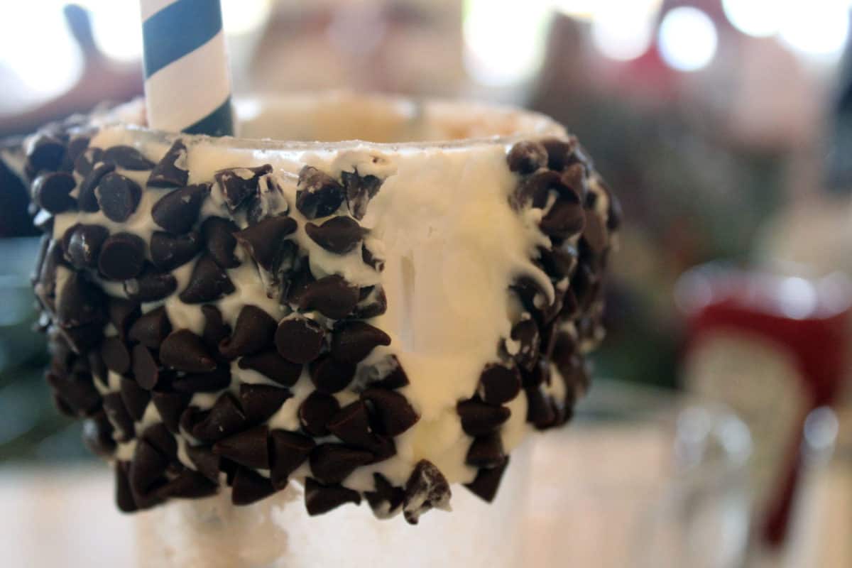 The side of the glass is also coated in frosting and chocolate chips. Like the marshmallow, it’s for show. I wouldn’t recommend eating it unless you have a serious sugar deficiency.