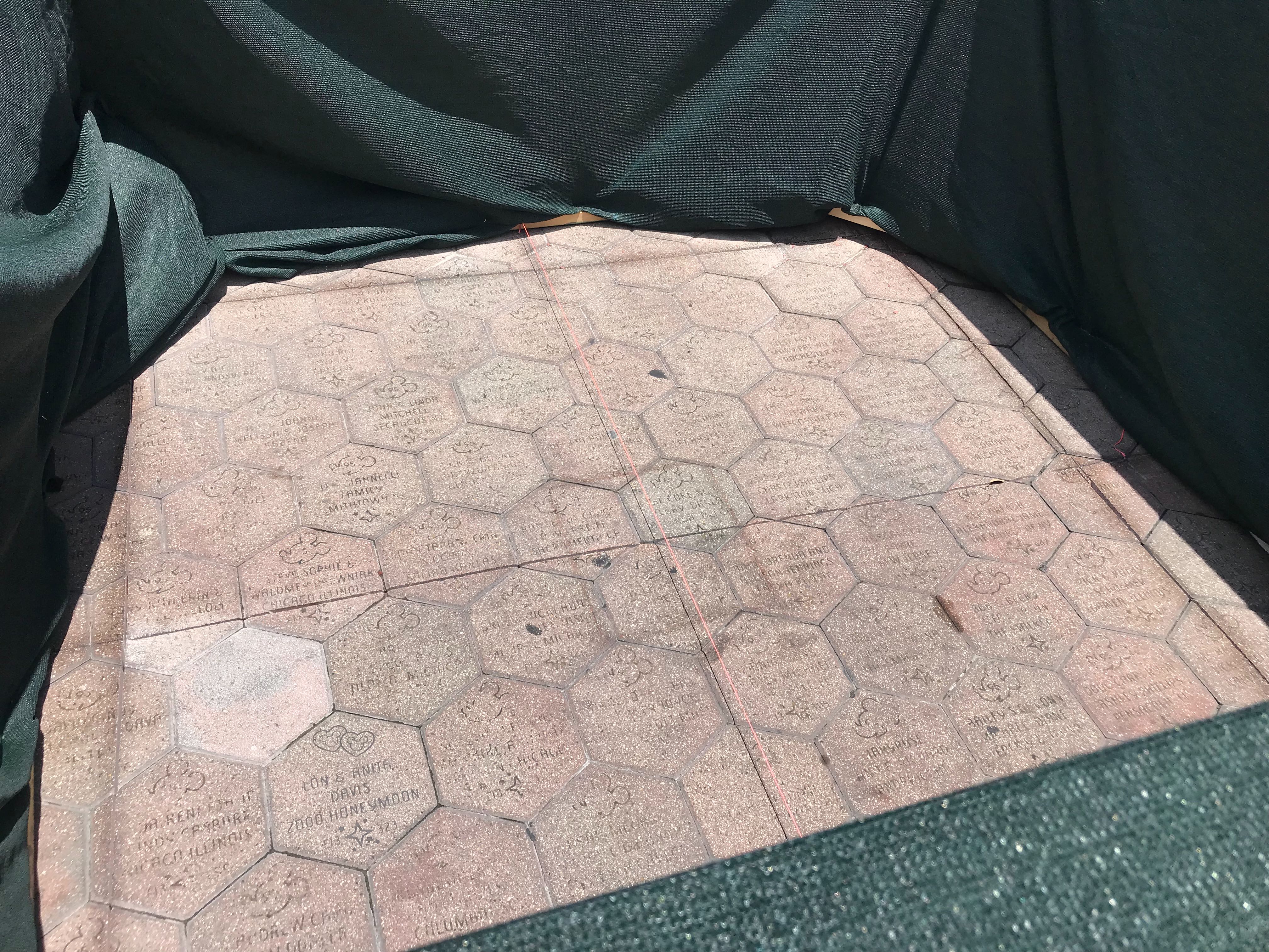 Currently, pathways by the security checkpoint are having their bricks removed and being repaved square by square simply to minimize guest impact.