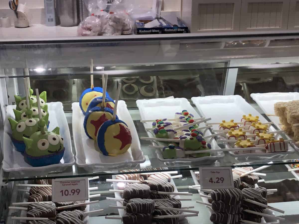 Speaking of Toy Story, they still have these cute themed candy apples and such in the Confectionary. I like the green alien, personally.