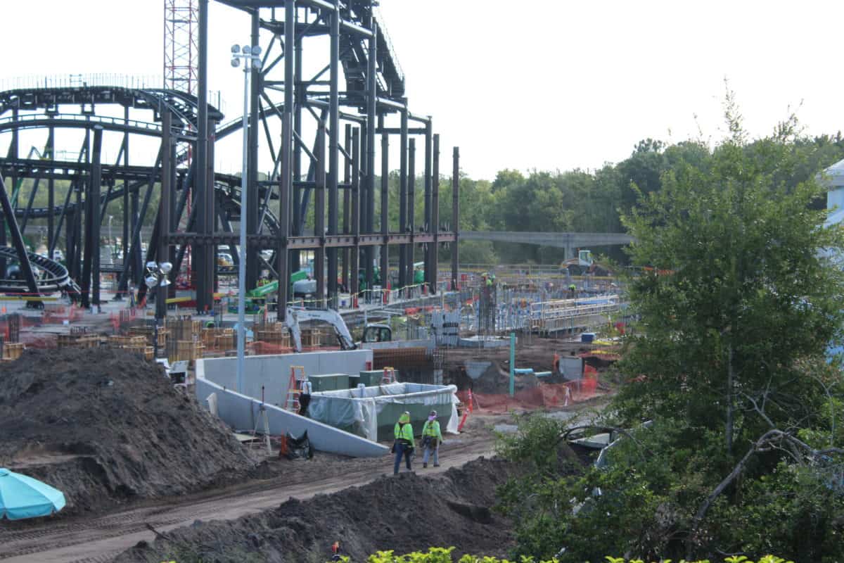 New steel framing is going up at the base of the tracks (for the show building maybe?) and lots of new foundations are being laid out.