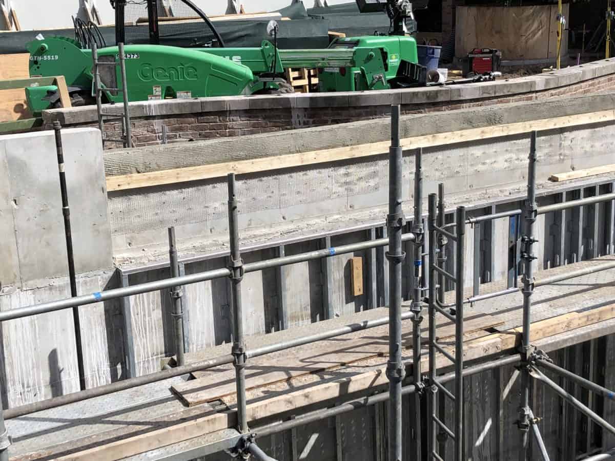 A little progress on the Castle Pathway project: some steel framing has been put up for the new facade to be affixed to.