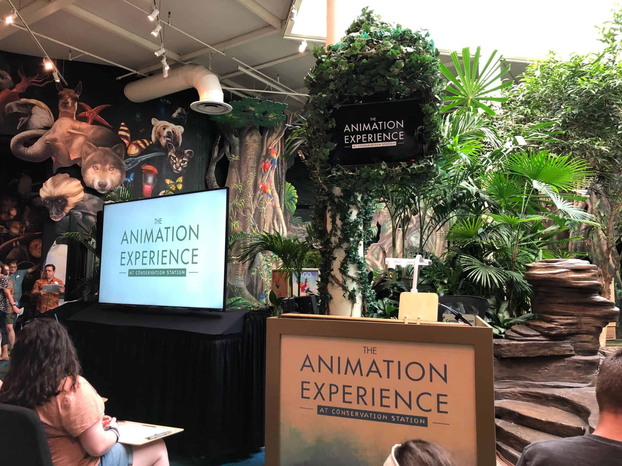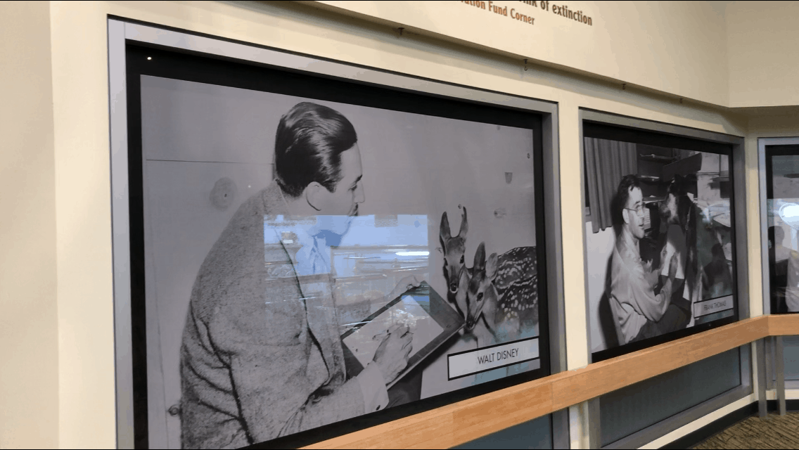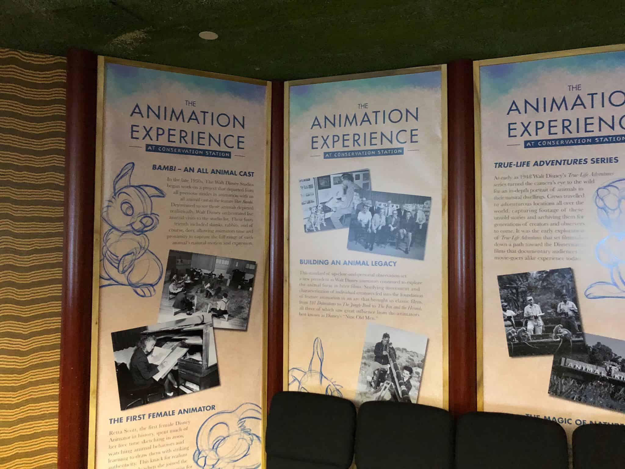 Photographs and diagrams along the walls tell the history of the True-Life Adventures nature documentary series, as well as various examples of when animators had live animals brought in for classic animated films such as Bambi.