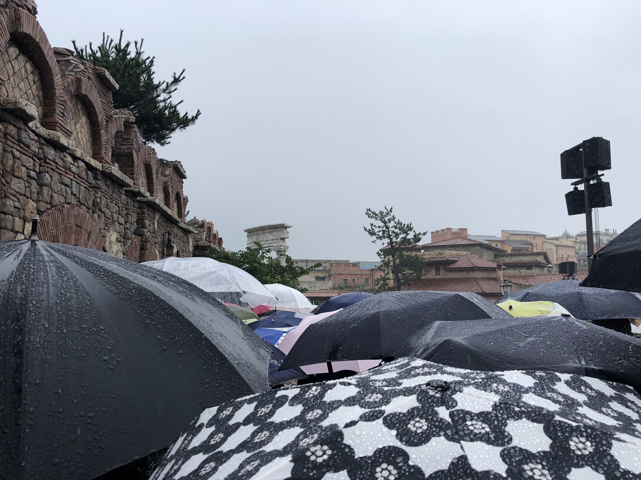 The rain was coming down hard, but that didn’t stop Tokyo DisneySea guests from lining up to be among the first to experience the attraction.
