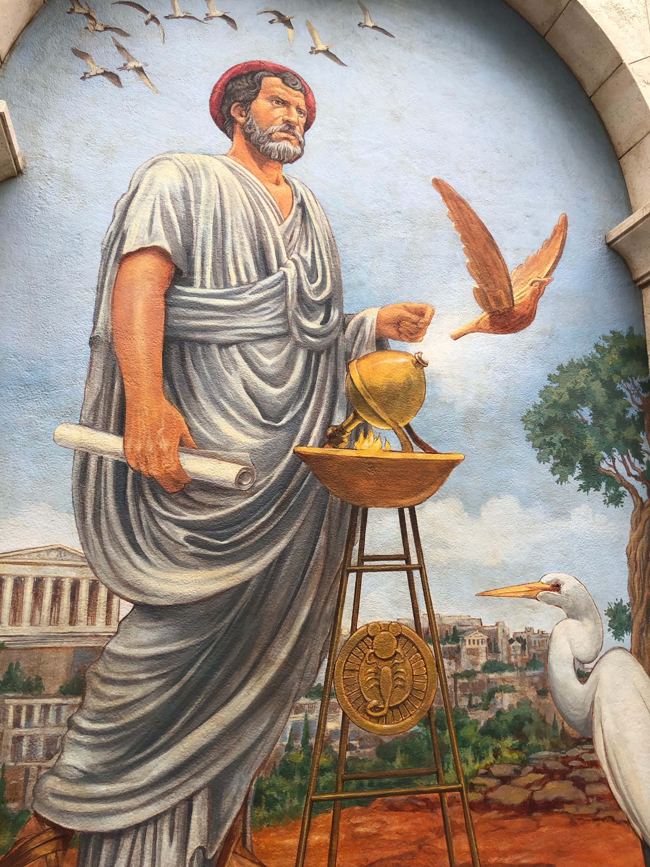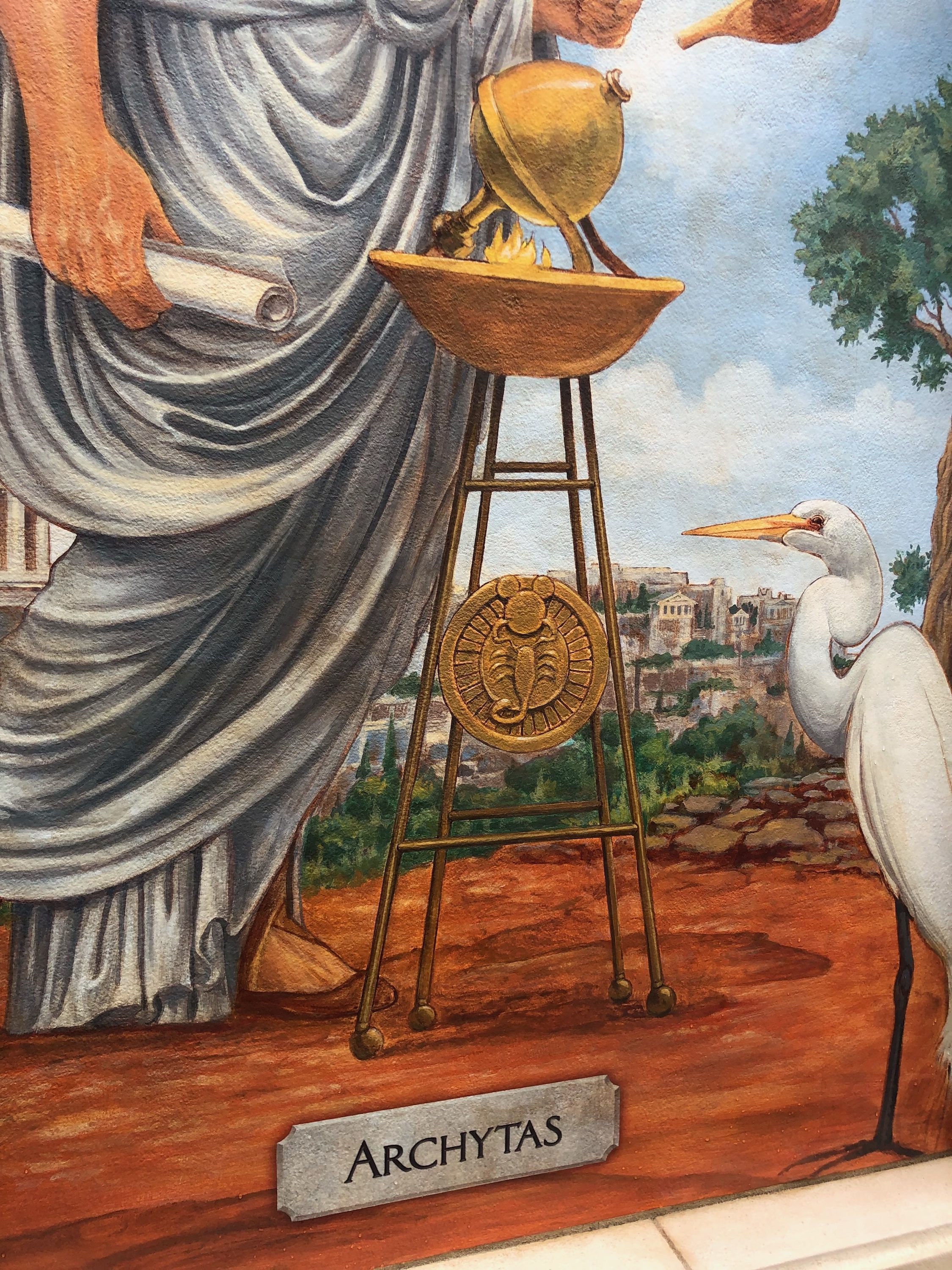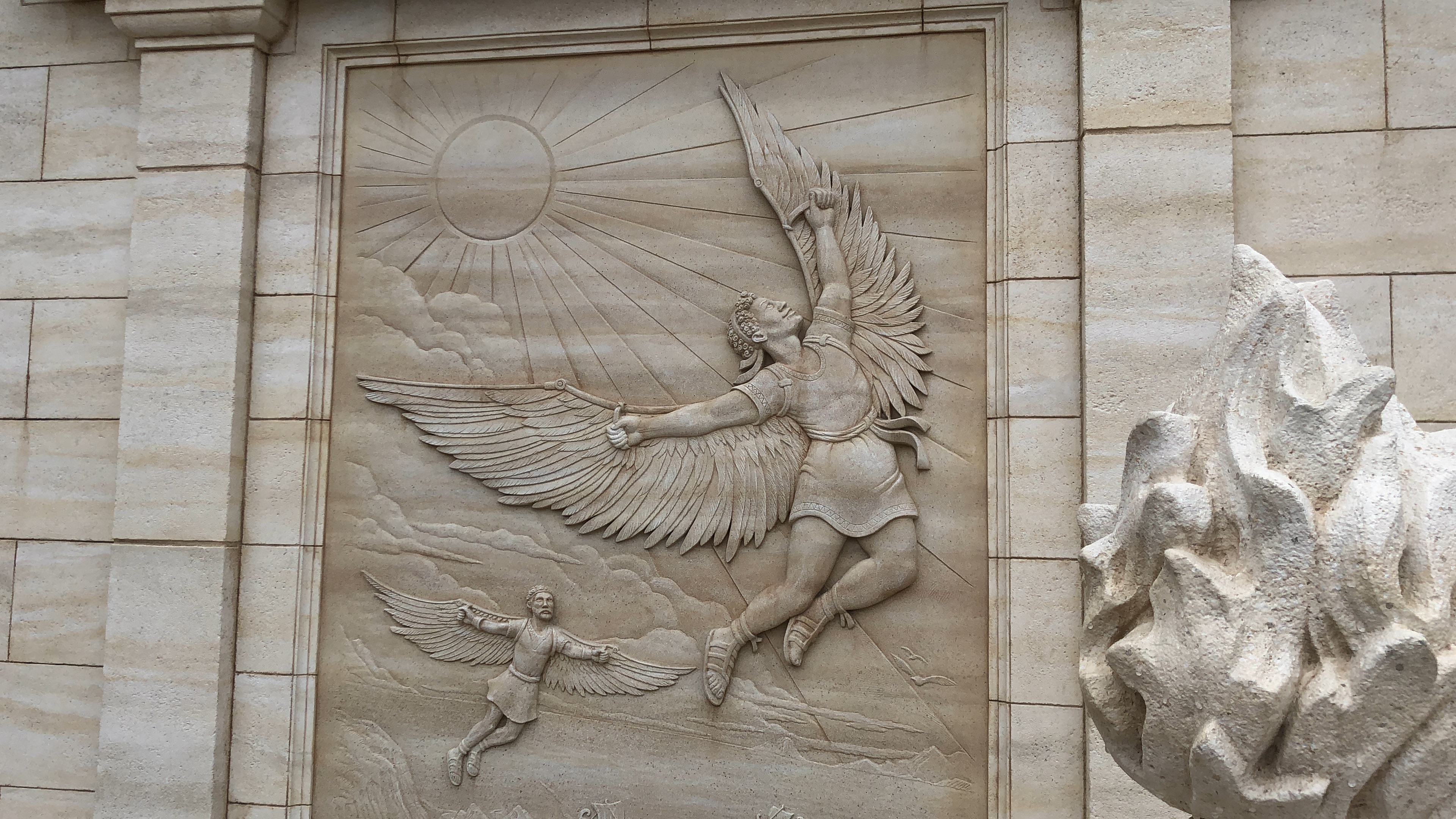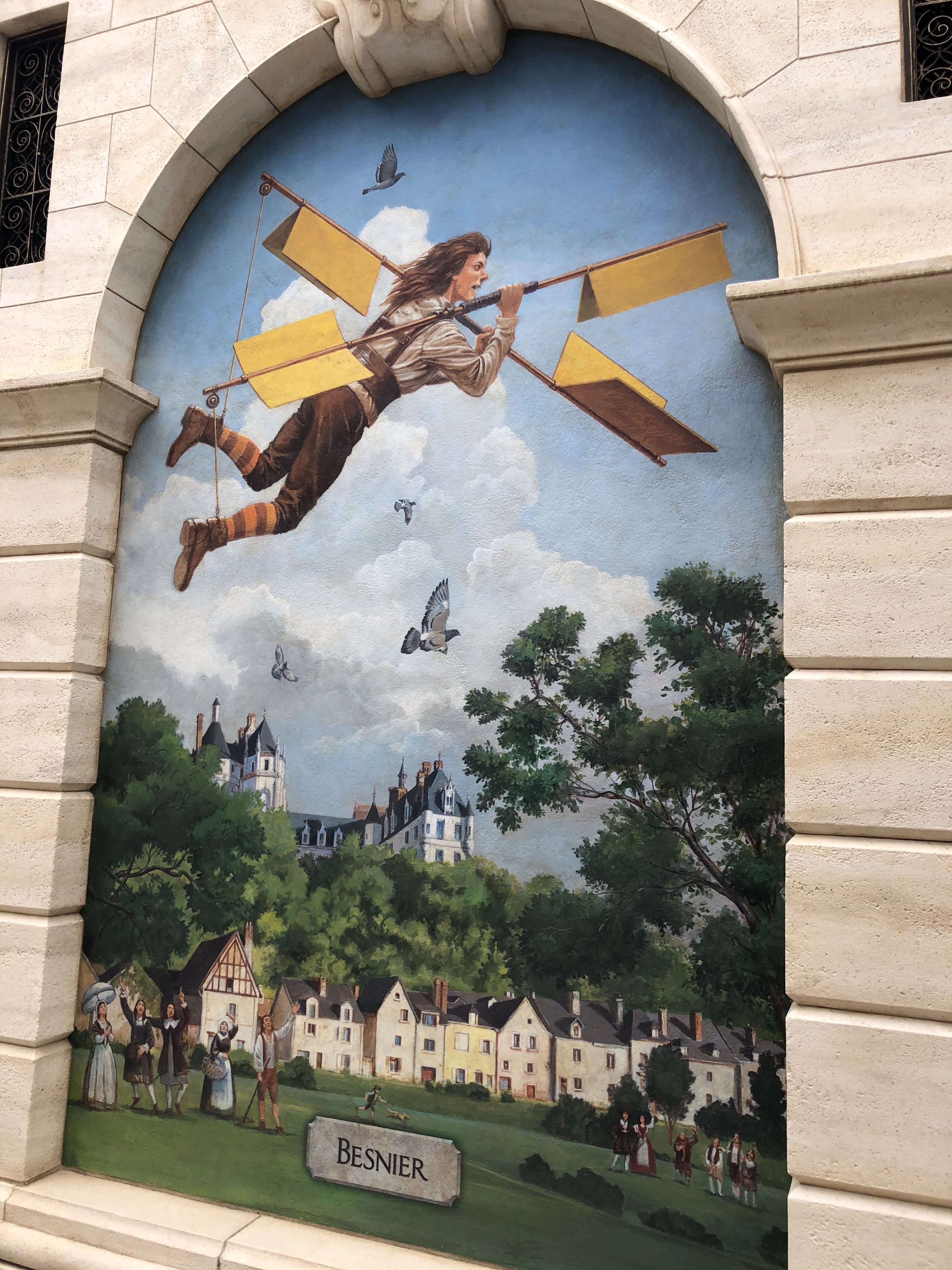 Murals of aviation visionaries adorn the lower outdoor queue area.