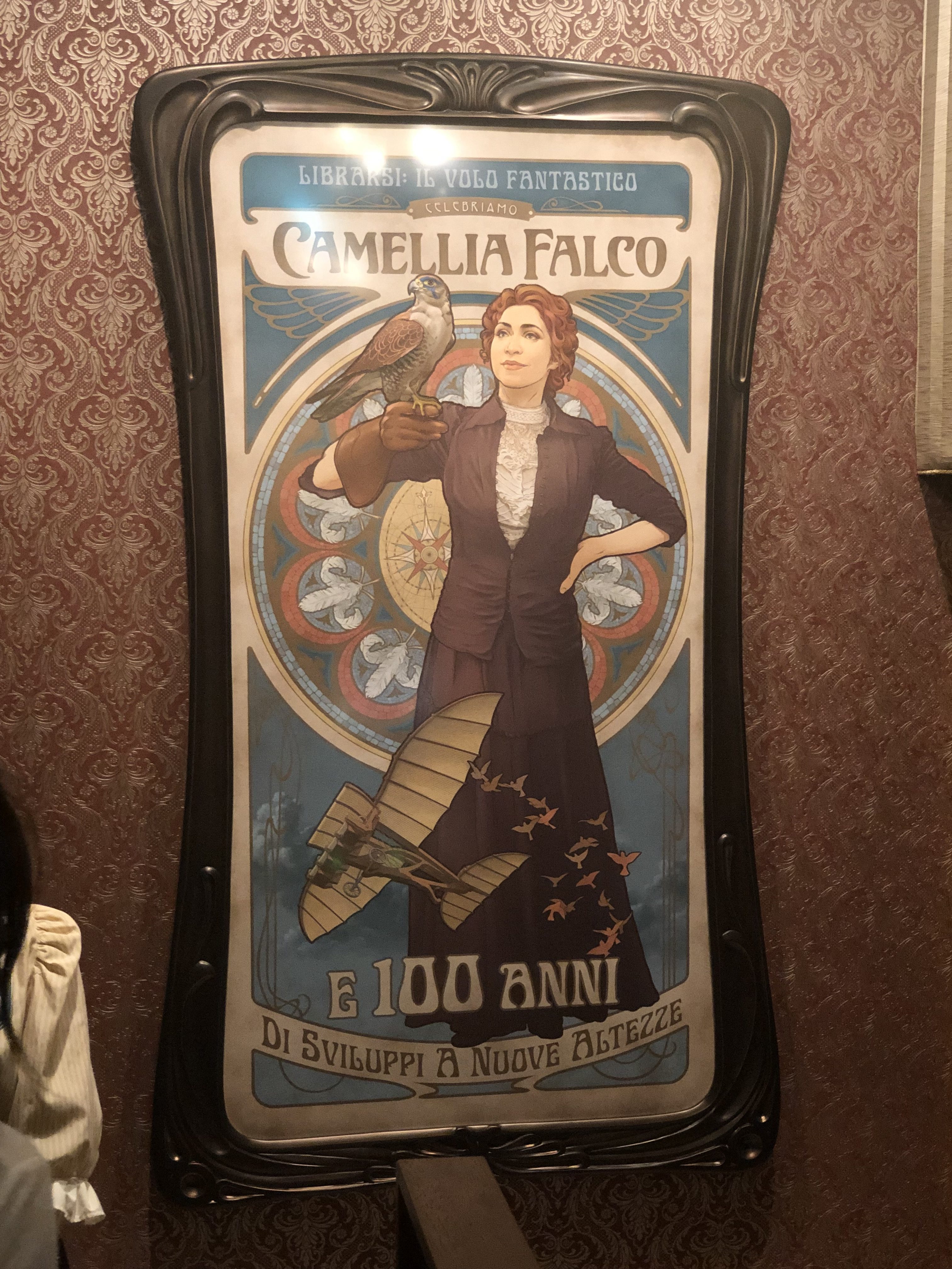 While the overall pre-show content is certainly amazing… I can’t help thinking that the team at WDI is adding “inside jokes” for statesiders. Camellia Falco is obviously an amalgam for Carmella Soprano/Edie Falco. The intended Japanese audience is generally none the wiser.