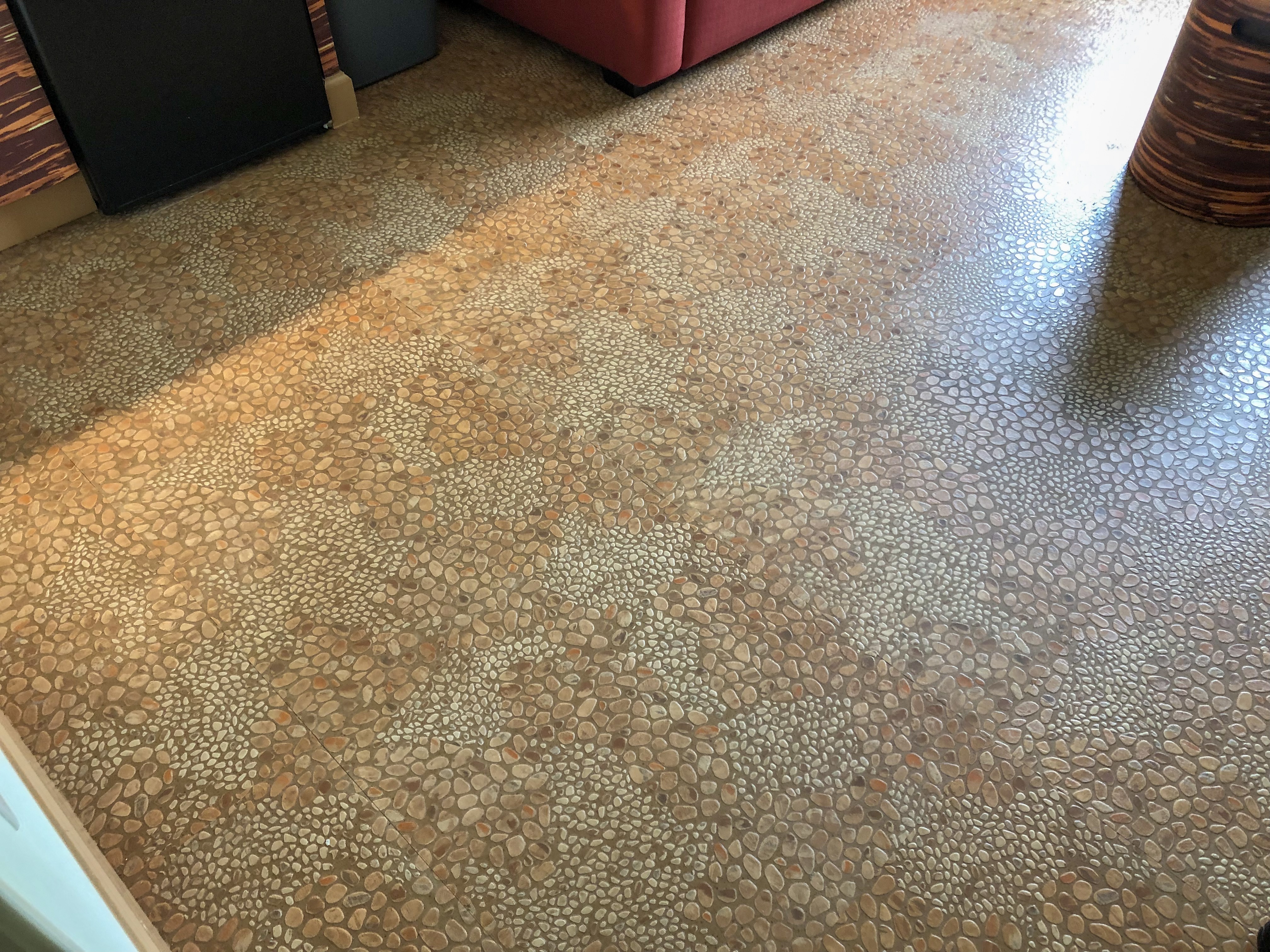 The new flooring is themed, so it looks like pebbled ground. It’s got an interesting feel to it when you walk on it.
