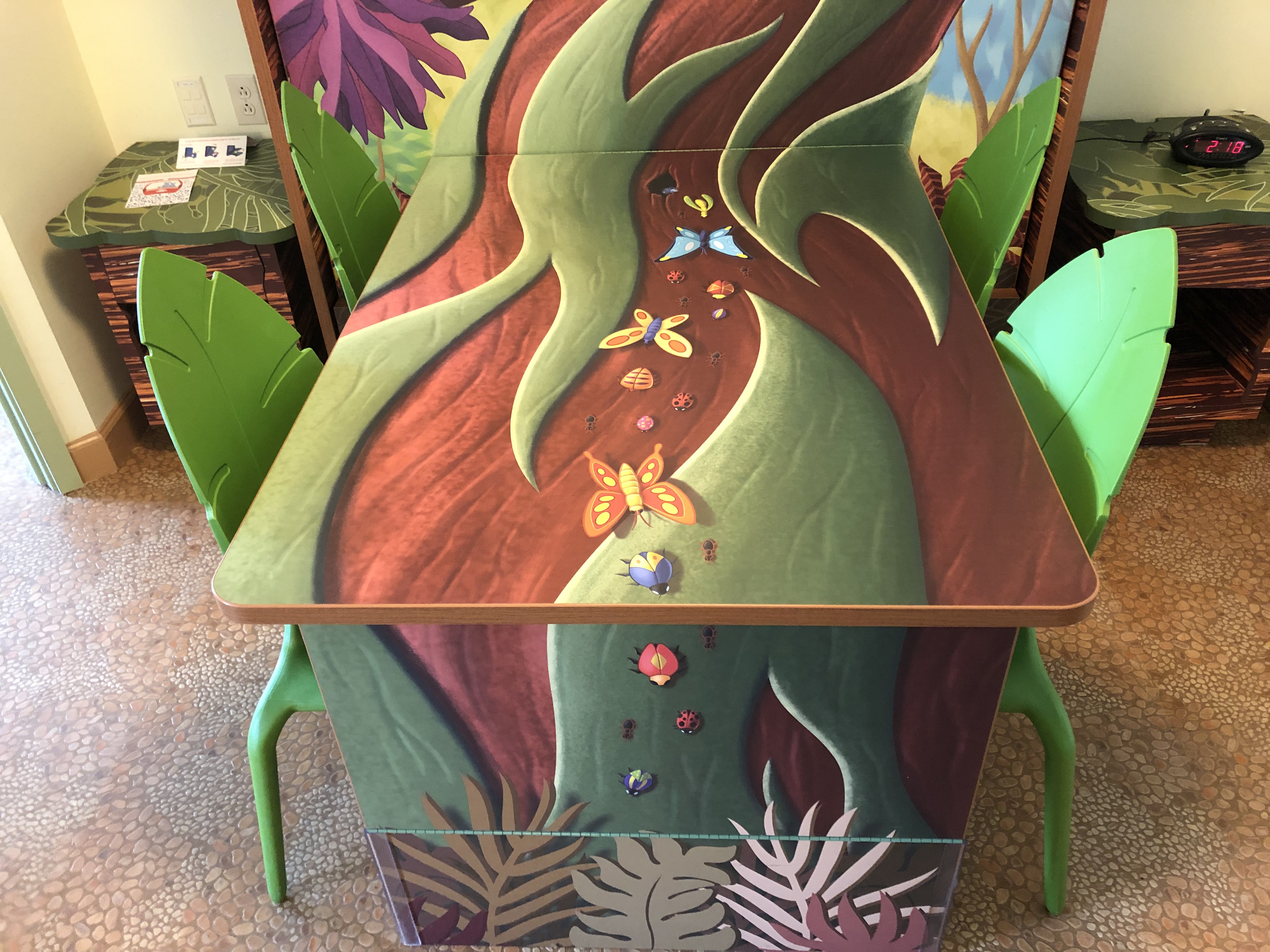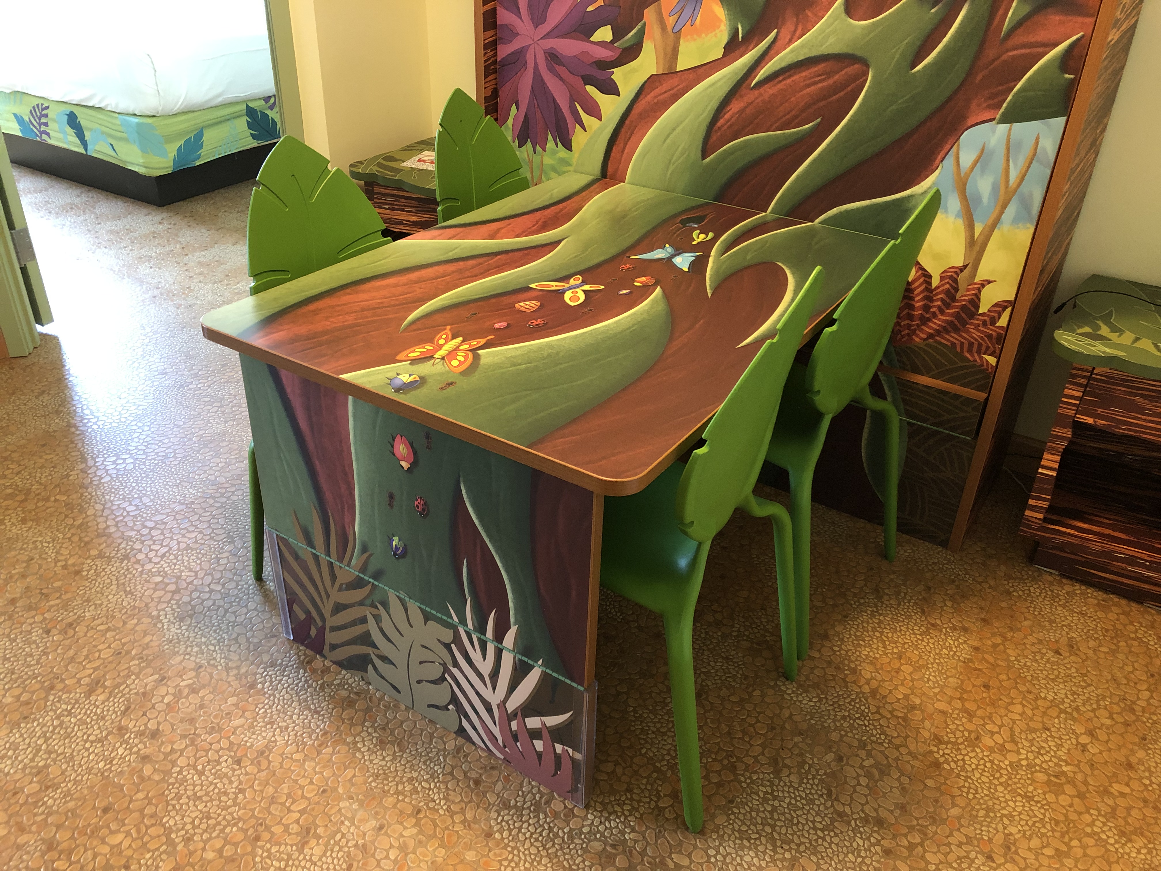 The room is so cute! When you first enter the room, there’s a wonderfully themed table with chairs.