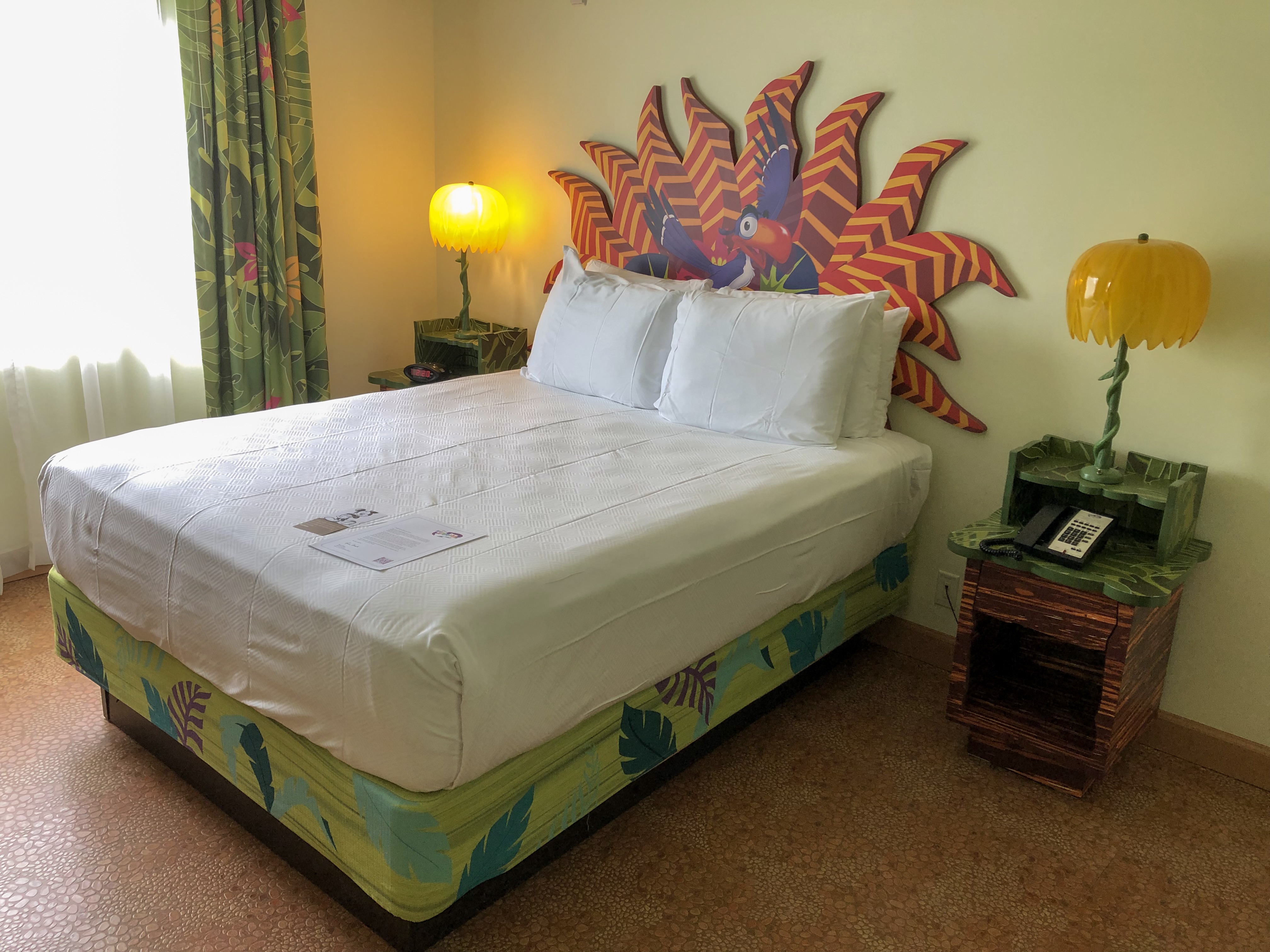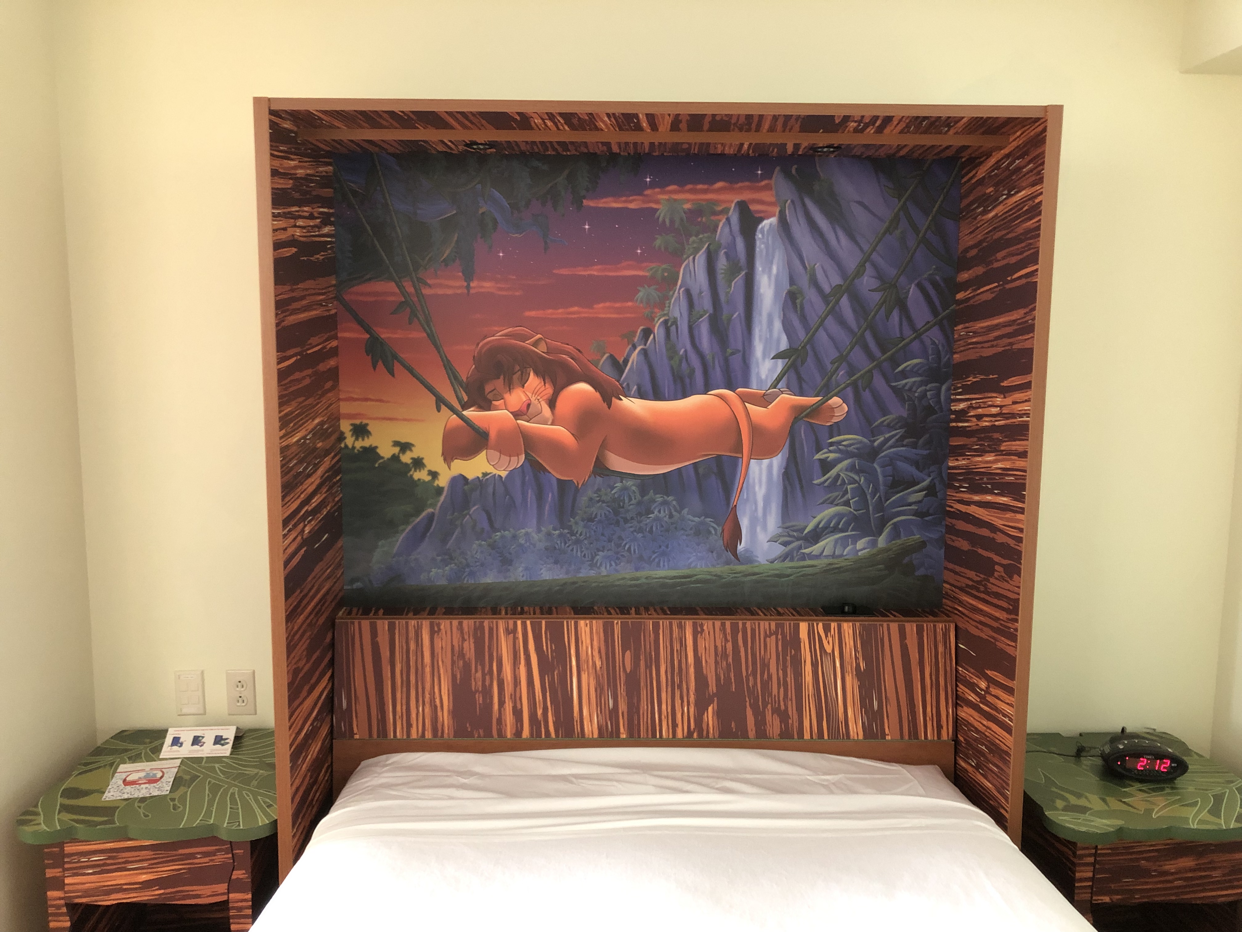 The flooring is the main thing that has changed in the room. The old carpet had a bright print with a distinct jungle vibe (can you spot the Hidden Mickey?). You can see an example here of the old carpeting from another Lion King room.