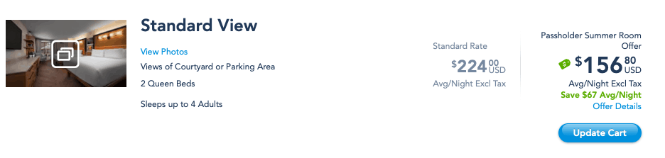 Let’s think of this as a base price. With most values priced out at $100 to $120 a night lately, it’s almost a no-brainer to “upgrade” to Coronado Springs for a mere $20 or so more. You’d be getting a more serene environment, with better theming, and upped amenities, to boot.