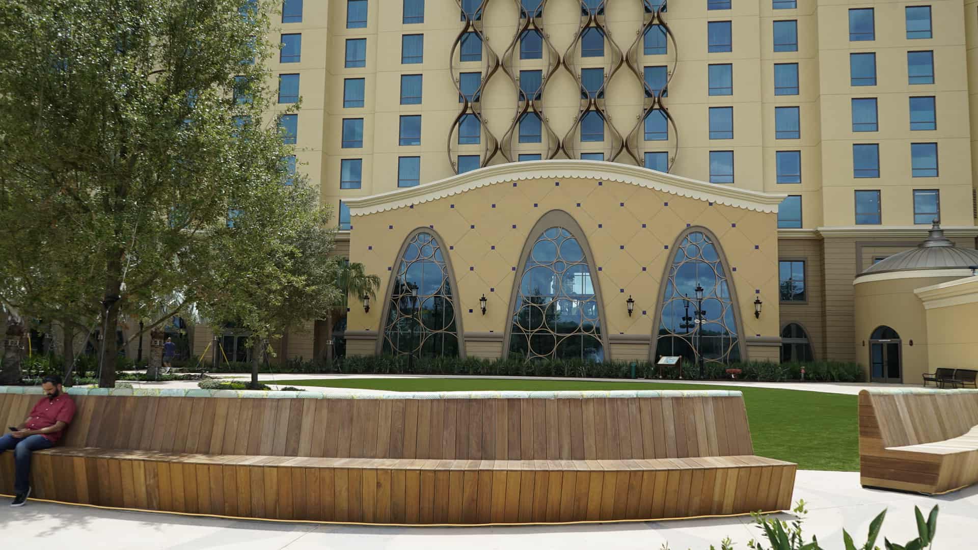 Gran Destino Tower Patio and Firepit – Lower Lobby Exterior