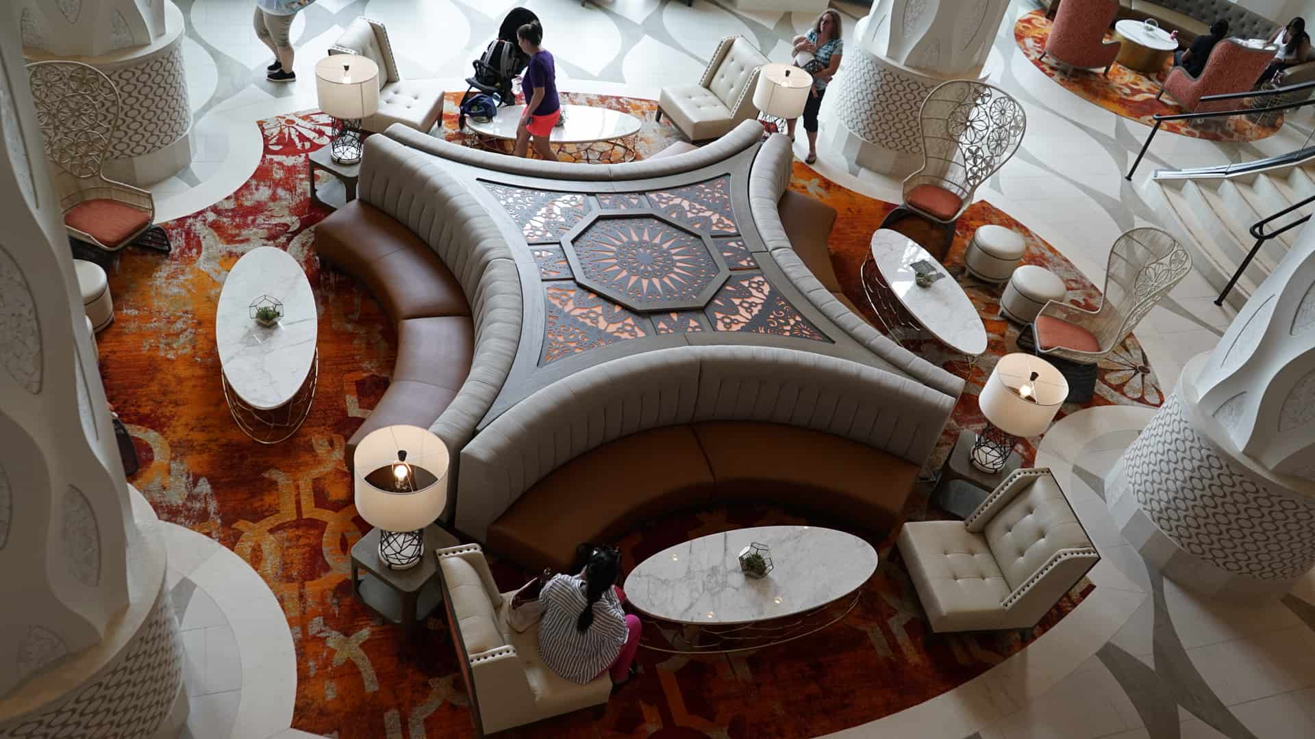 This outdoor area offers great views up at the water-view side of the resort, as well as Toledo restaurant. For a full-on walkthrough of all these spaces, check out our Gran Destino Tower Building Tour below: