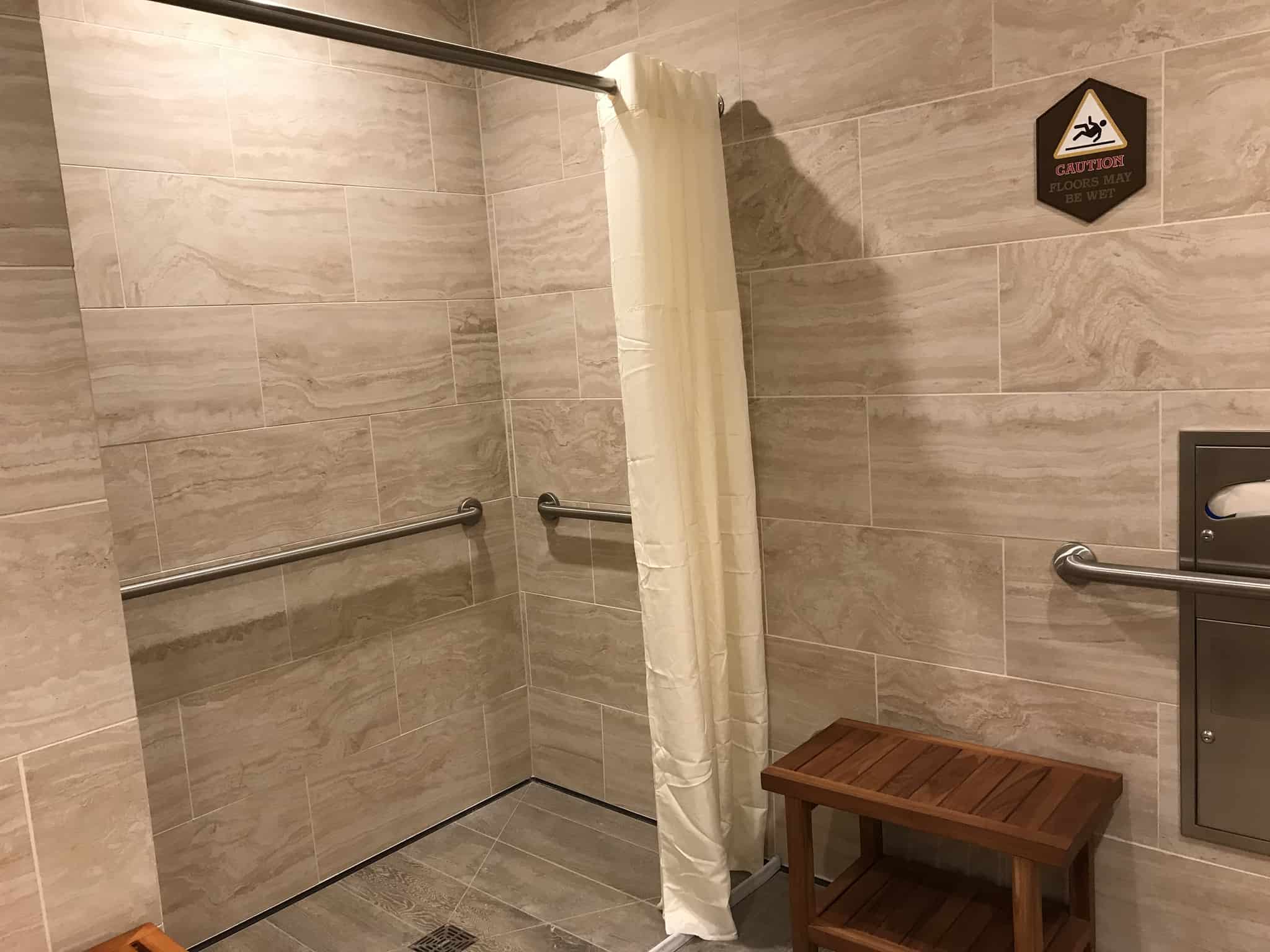 The bathrooms here are actually single bathroom/shower combo units. These also come in handy if you want to squeeze a workout (or park visit) in after check-out and would like to freshen up afterward.