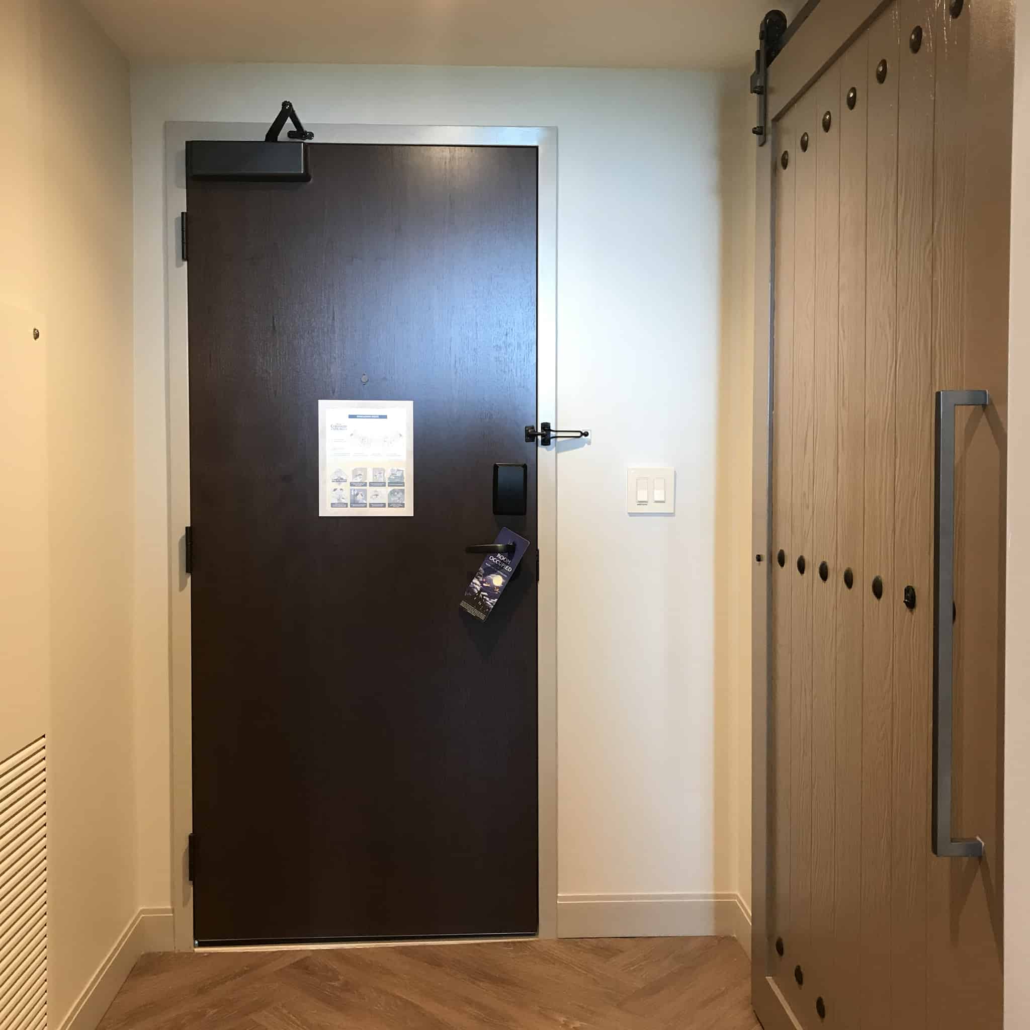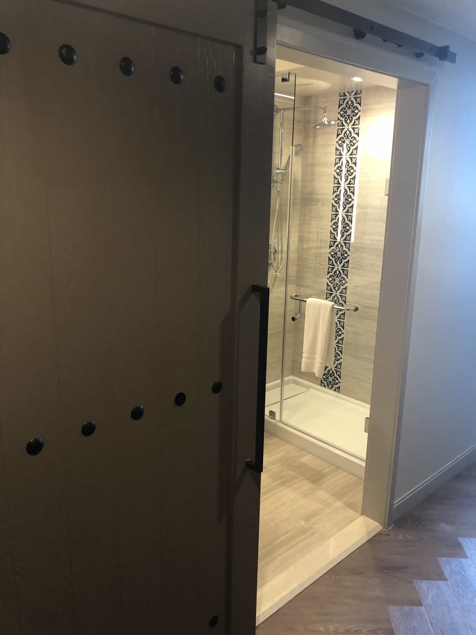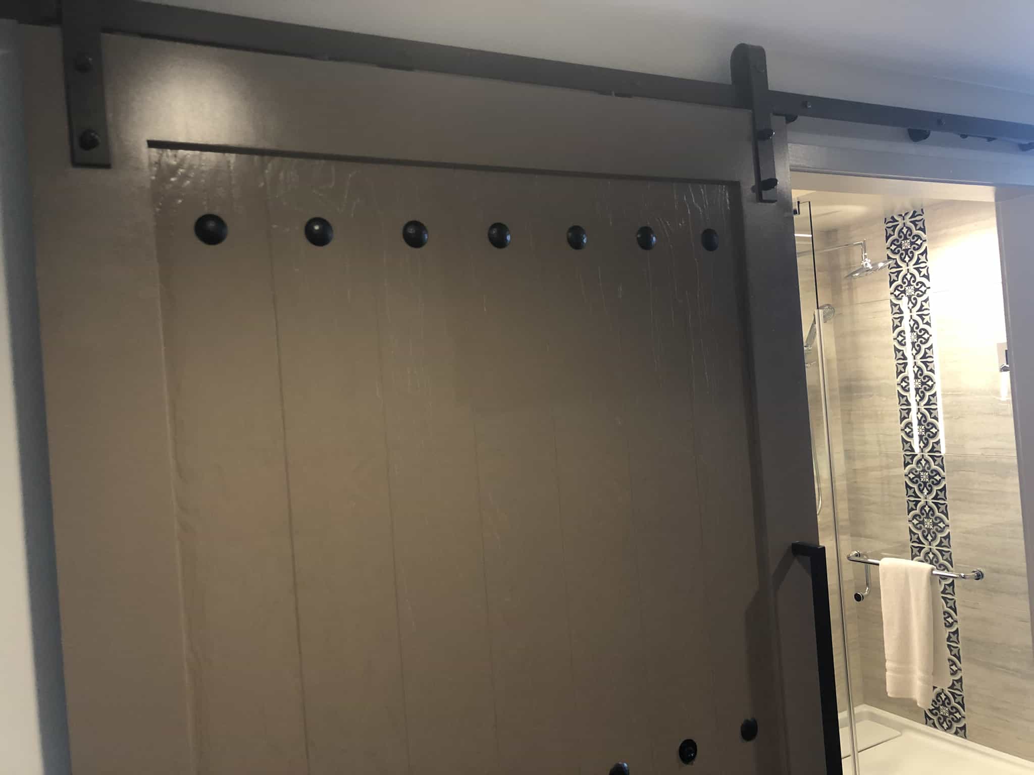 If someone’s showering and the sliding barn door is closed, the toilet and sinks become officially unavailable to the rest of the room, essentially defeating the purpose of dividing the bathroom into sections. If you’re traveling with a group or a family, do keep that in mind as it might require you to shower or use the bathroom in shifts. The sliding barn door does have a locking mechanism built into the wall, as well.