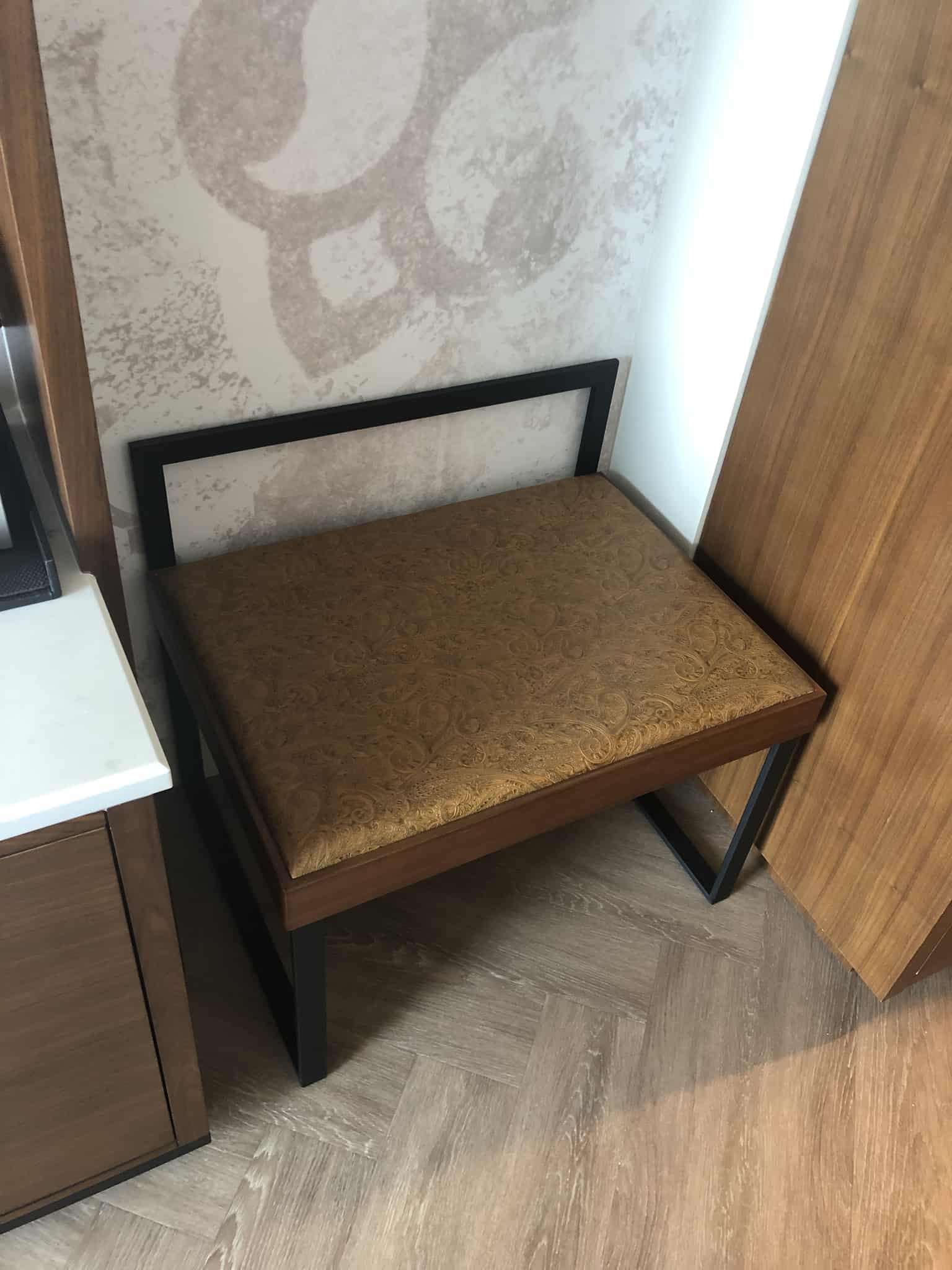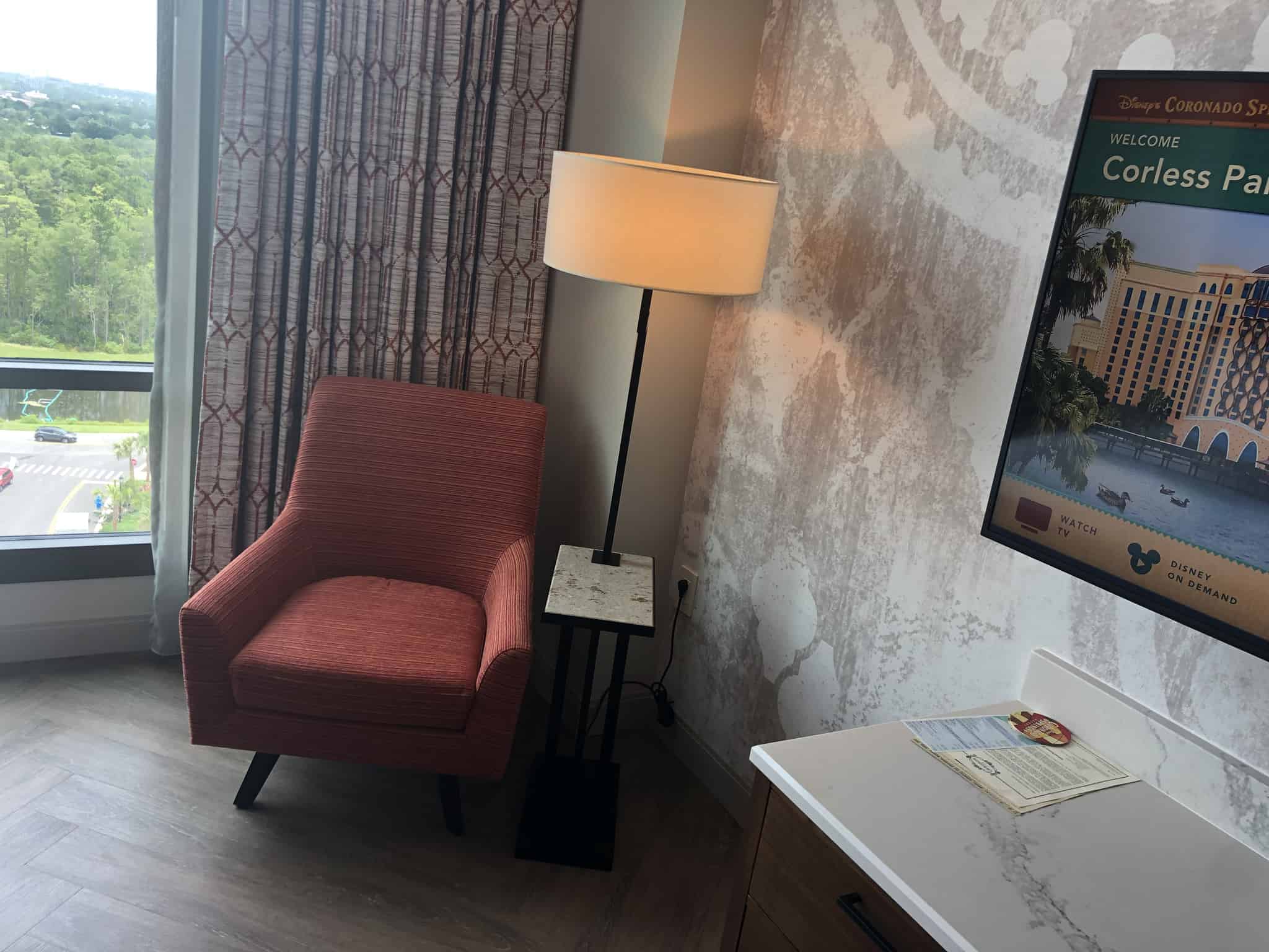 One of the more distinct aspects of these rooms are these cute armchair nooks, available in most queen bed rooms. A modern-looking armchair (it’s surprisingly comfortable, too) sits next to a lamp with a small marble table for your tablet, phone, and a cup of coffee.