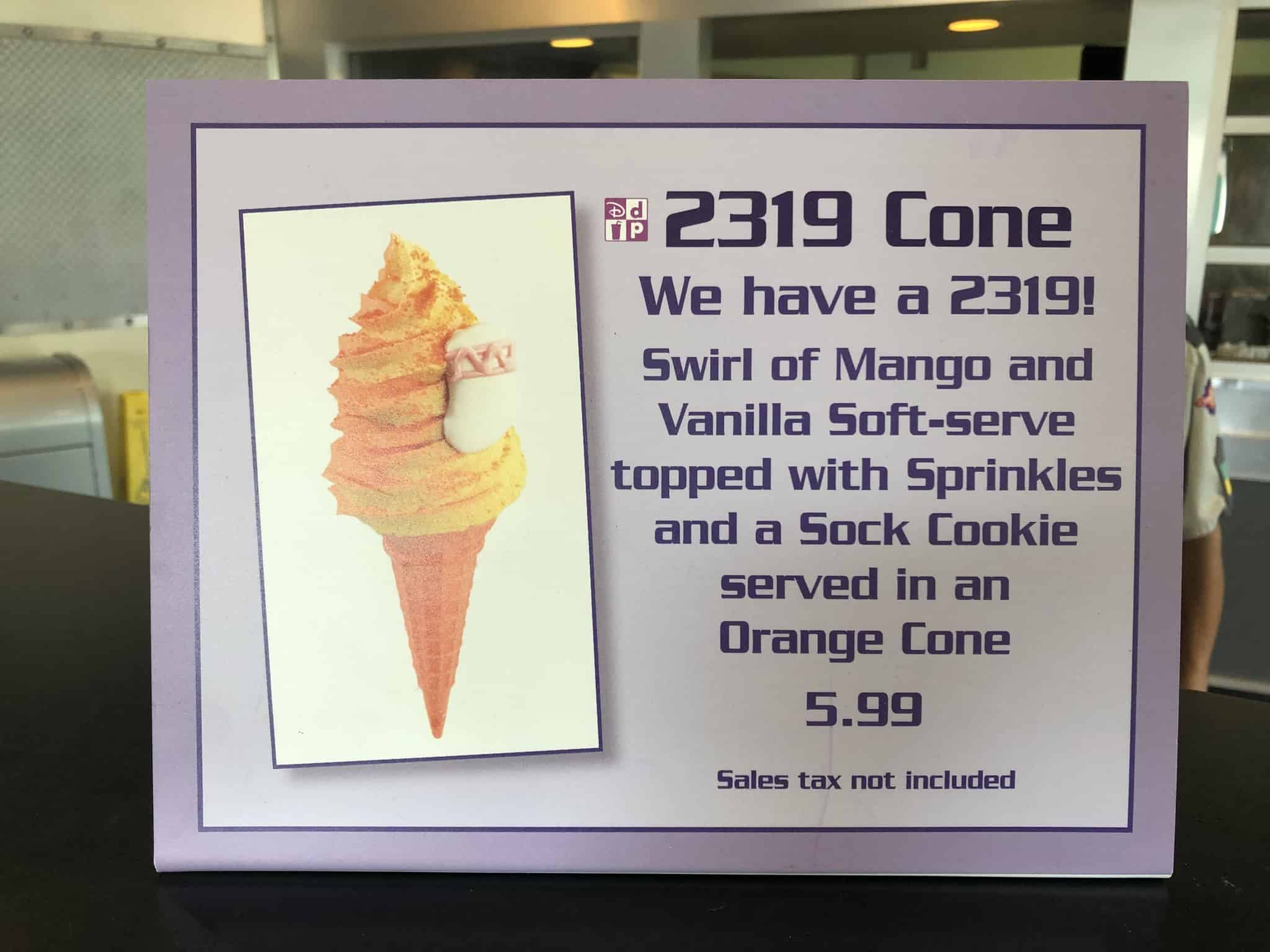 The Cone 2319 is available for $5.99. It’s a perfect combination of mango and vanilla swirl, topped by a tiny little toxic sock.