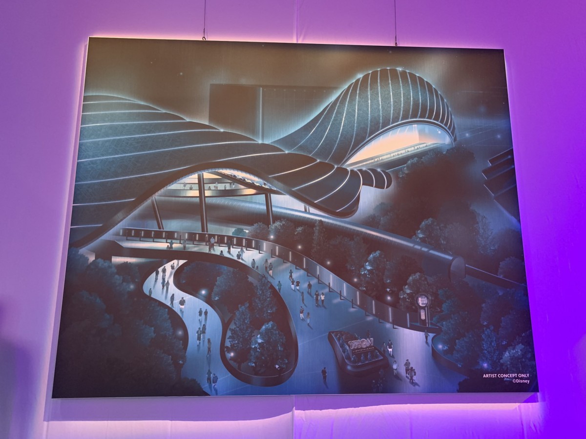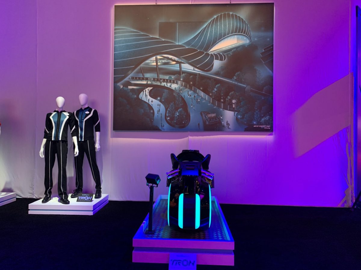At tonight’s D23 Expo 2019 media preview, guests were treated to a floor full of concept art, Cast Member costumes, and attraction insights. As far as the TRON Roller Coaster that’s been under construction at the Magic Kingdom, we now know its official name: TRON Lightcycle Run, which is slightly different from its Shanghai counterpart.