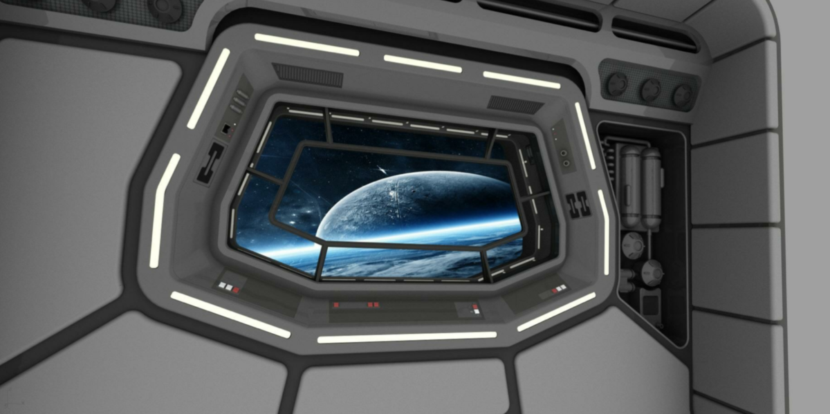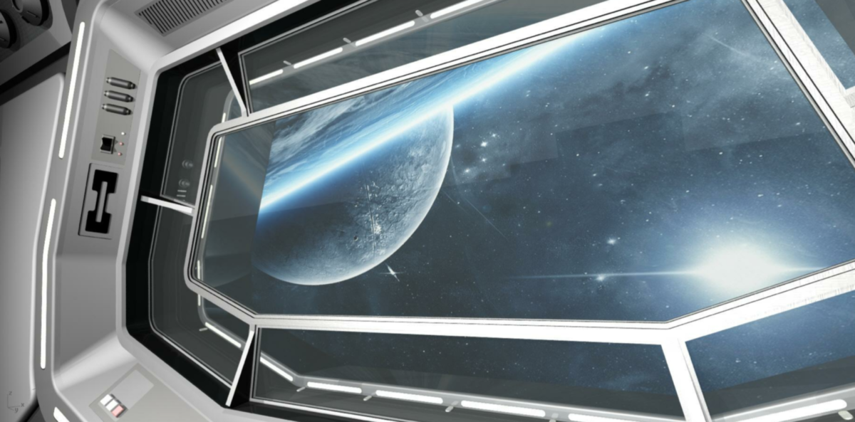 Guest rooms feature “windows” that look out into space.