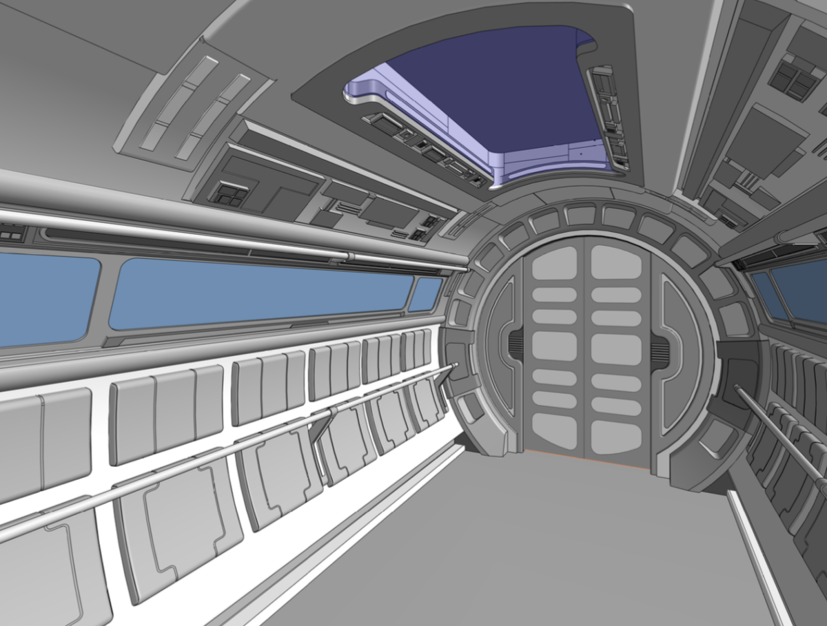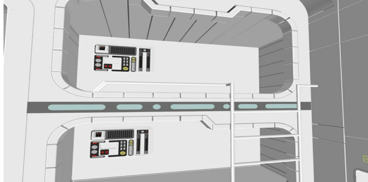 Here is the inside of the launch pod that will send guests from Earth to the ship to begin their journey.