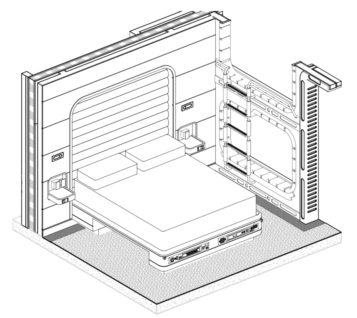 A section of a guest cabin is presented in this 3-D rendering.