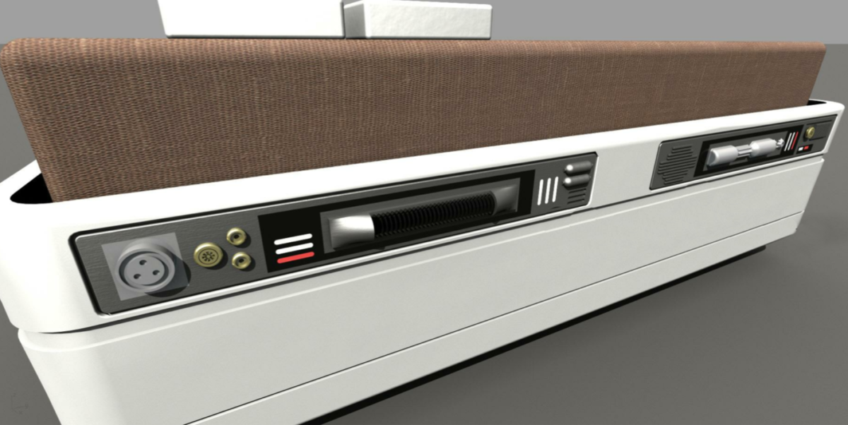 Consoles inside the bunk bed alcoves are well-themed, but also look to have a place to put your cell phone and such so it’s not too far from you through the night.