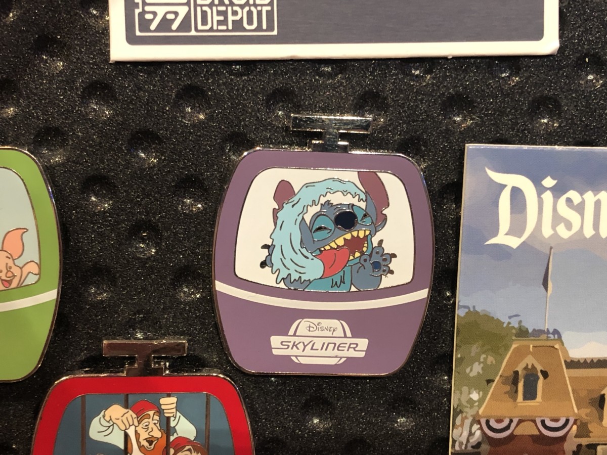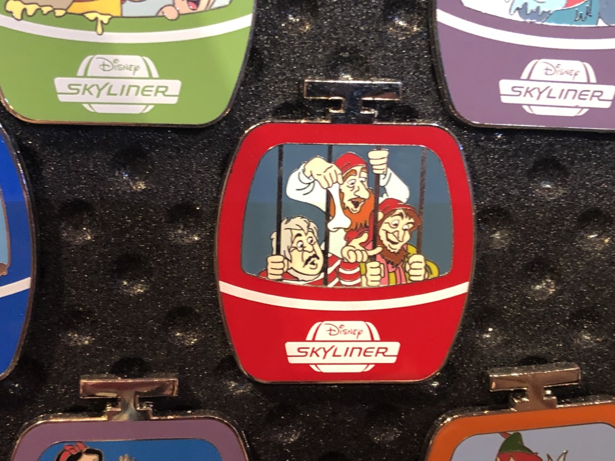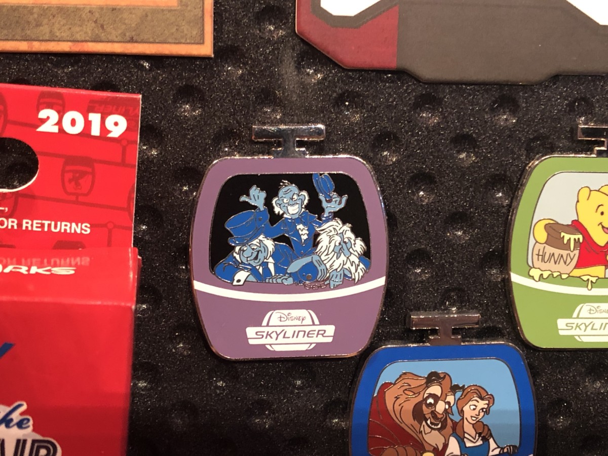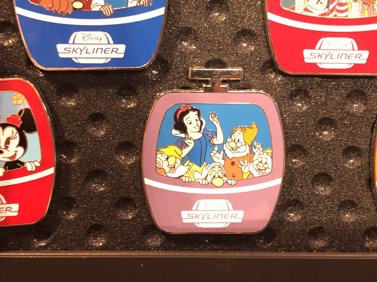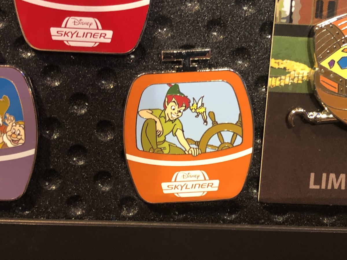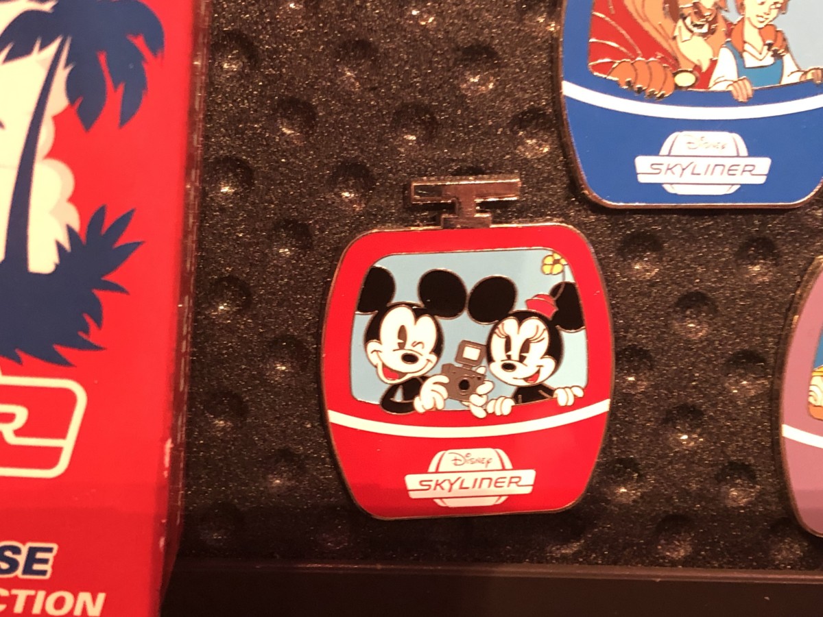 The “Inaugural Flight 2019” pin is limited edition and shows the Skyliner gondola with “World Above” in the window.
