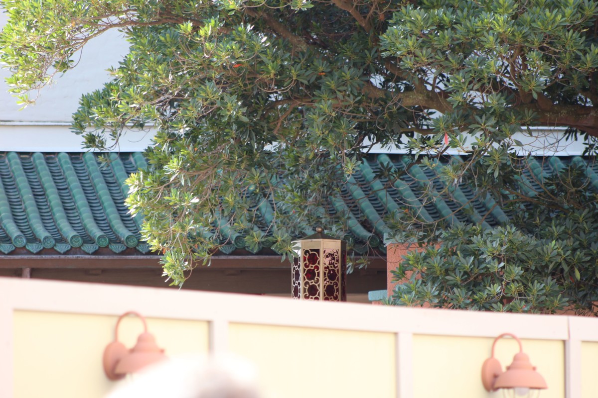 It seems red Mickey lanterns have sprouted all over the area. The fixtures feature gold-ish copper metal hues and red glass panes, with sets of retro-looking fans jutting out from the body.