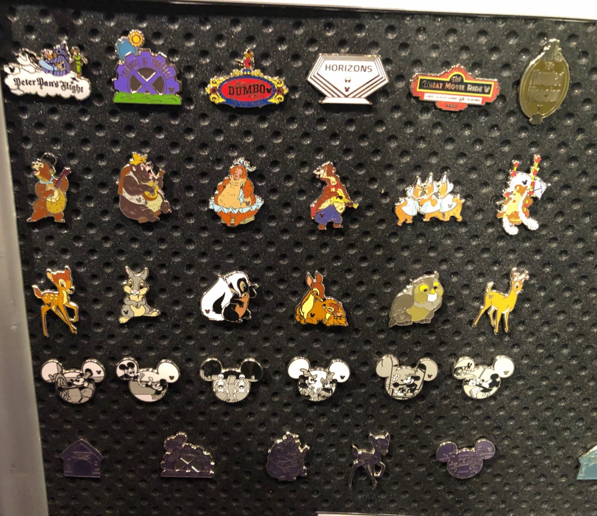 Walt Disney World will receive 4 exclusive Hidden Mickey pin sets. The classic attractions series features Peter Pan’s Flight, Carousel of Progress, Dumbo, Horizons, the Great Movie Ride, and the Haunted Mansion. The chaser is a purple Carousel of Progress sign. The Country Bears are actually getting some love here! There is an entire 6 pins set (7 if you include the purple chaser) of our beloved bears. We will be looking to complete this set for sure. Bambi is also getting an entire set of pins, too. The one of Bambi and his mother is adorable. The Mickey Shorts black and white series is fun, and even includes one of my favorites, Skeleton Dance. This is a nice variety of new Hidden Mickey pins.