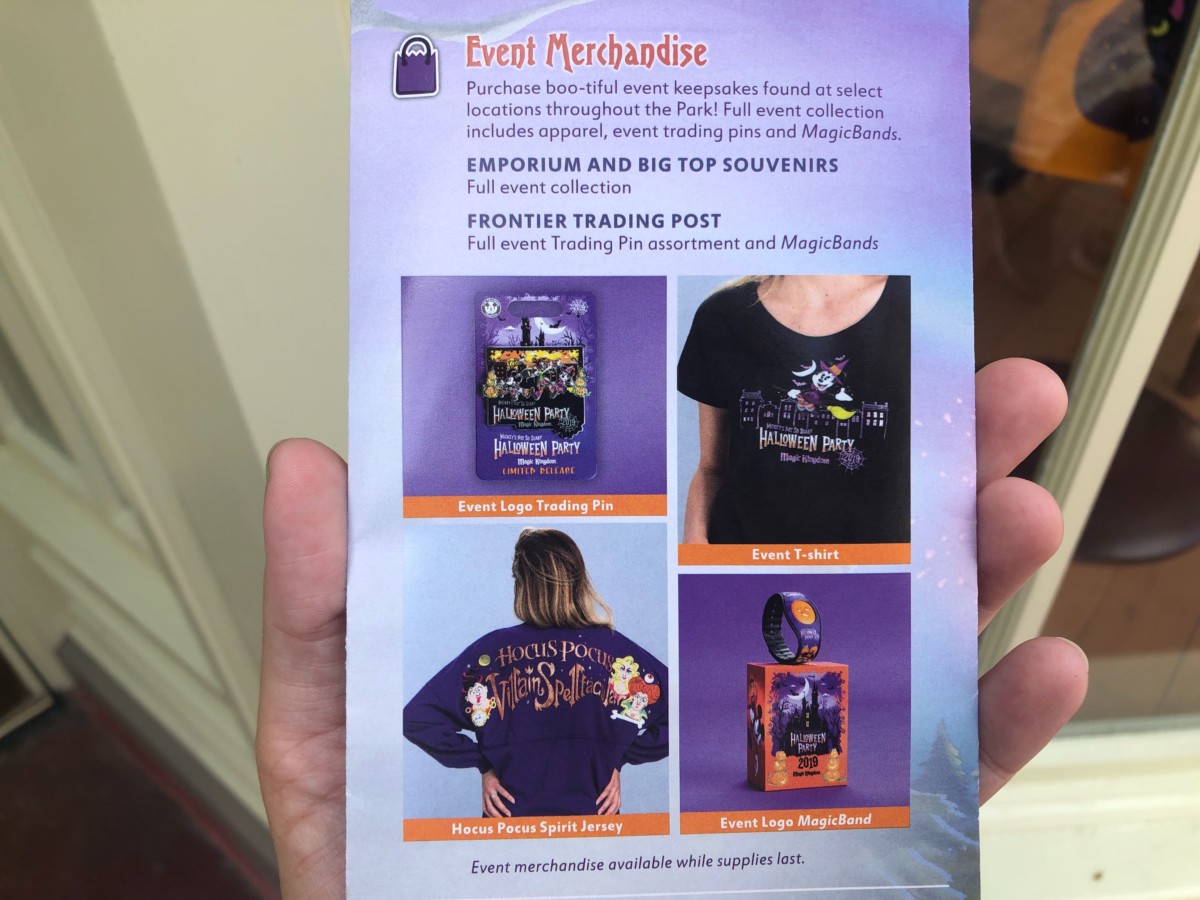 What would a Disney event be without merchandise? Here’s a sneak peek at some of the merchandise that will be available, like an event-exclusive Hocus Pocus Spirit Jersey, and Event Logo MagicBand, tee, and pin.