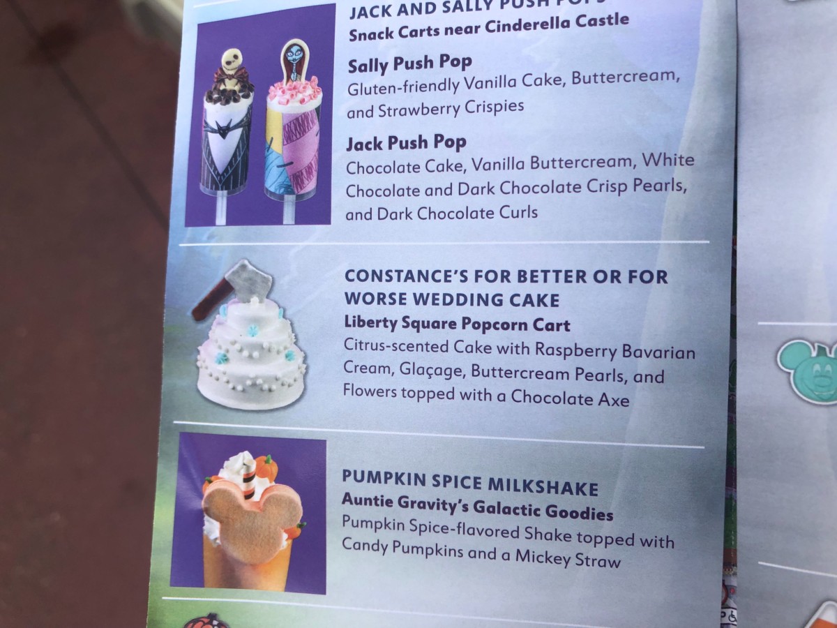 This year’s party features a variety of new and returning treats, like the Jack Push Pop, now with a gluten-friendly Sally Push Pop, available at the Snack Carts near Cinderella Castle.
