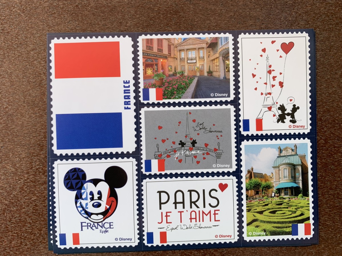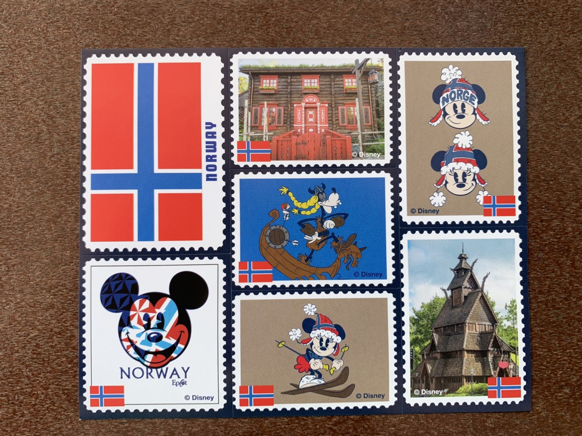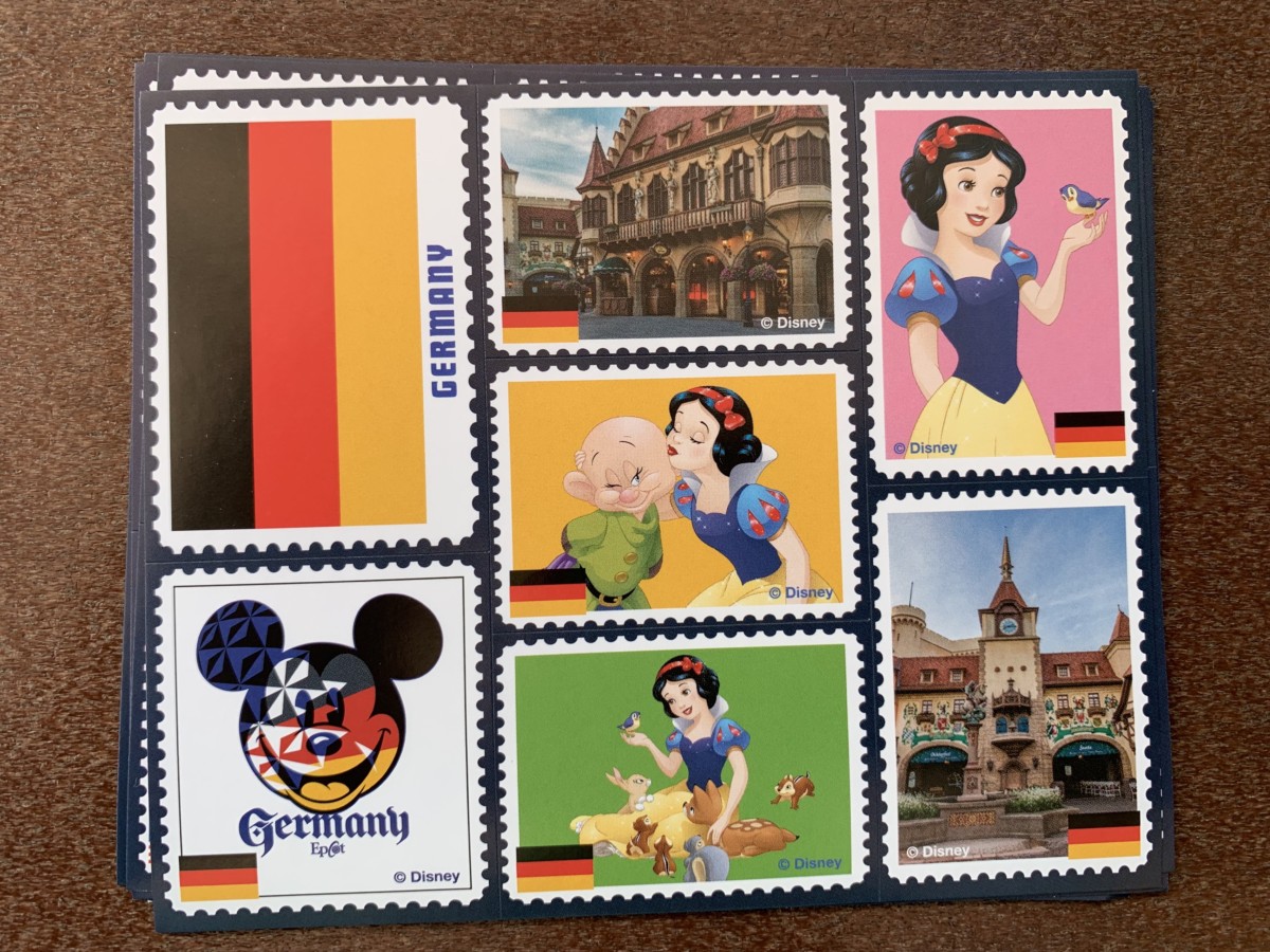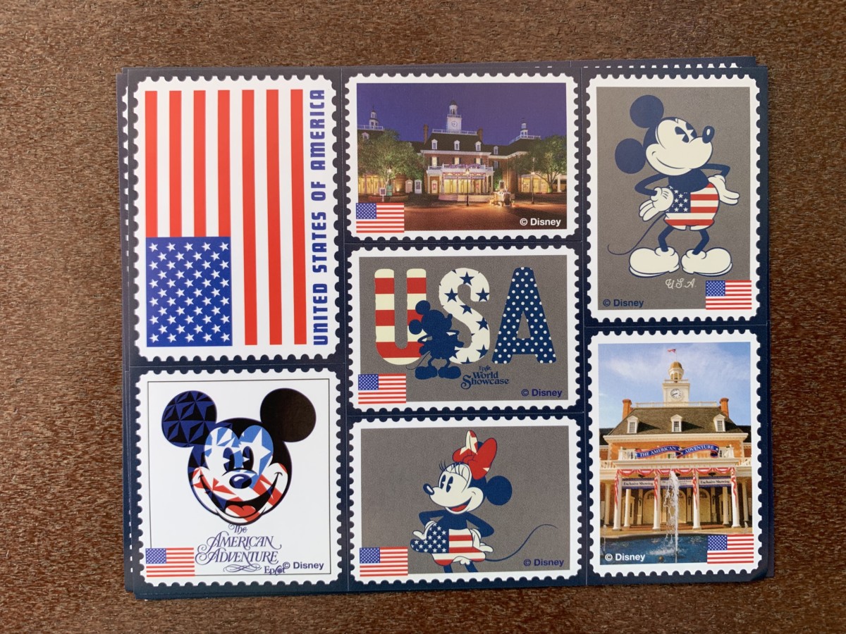 Each country gets a sticker sheet with seven stickers each, representing a mix of location-appropriate Disney characters and landmarks from inside the pavilions.
