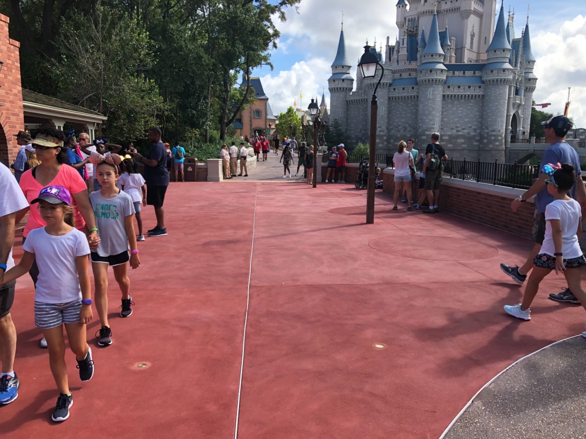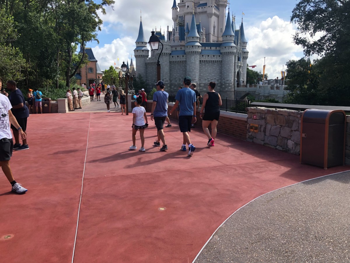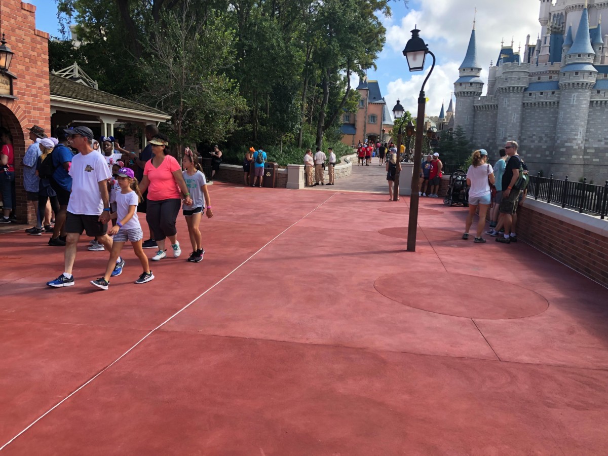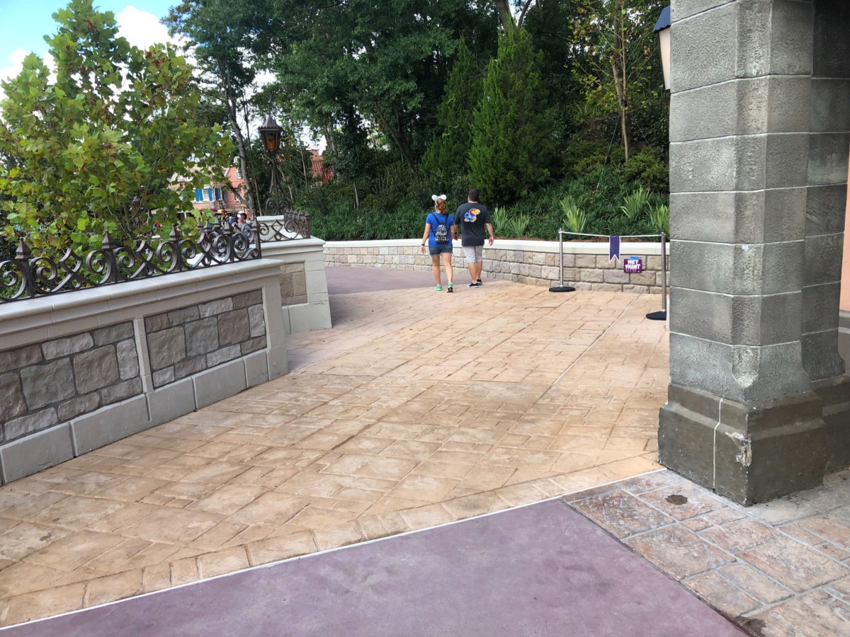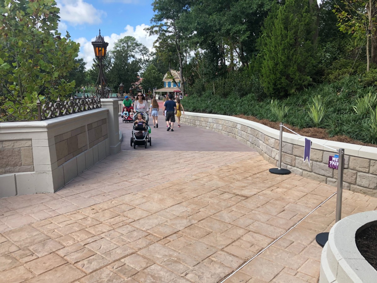 Citizens of the Magic Kingdom! It is time. The beloved and much-missed Cinderella Castle pathway linking Fantasyland and Liberty Square has officially opened today and guests are traversing the newly-expanded, freshly-cemented walkway today at the Magic Kingdom.