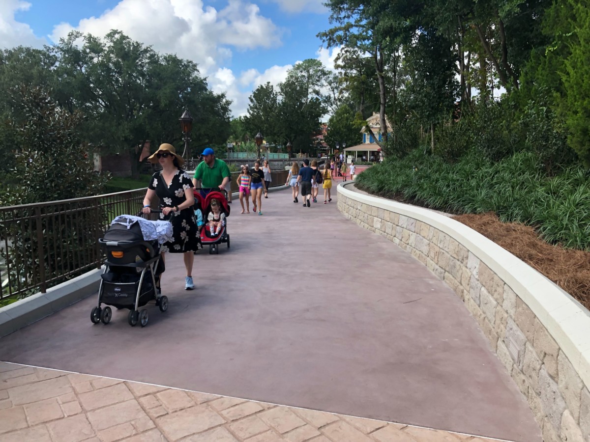 As you can see, there’s enough room for rows of strollers going in one direction while still leaving plenty of space for guests traveling in the other direction. Things used to be a bit more single-file in the ye olden days of the more narrow pathway.