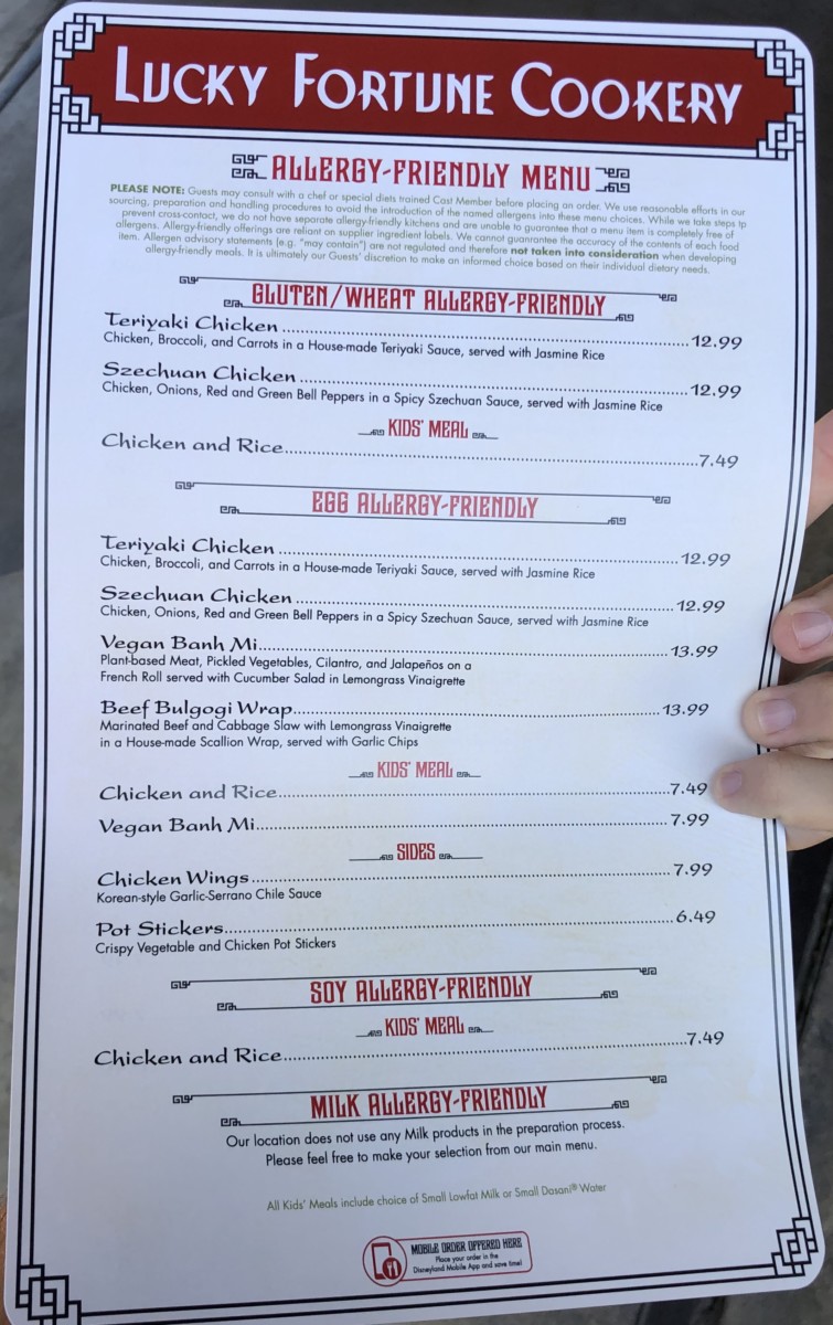 If you’re interested in any of these items, but are wary of cross-contamination, we’ve included the Allergy-Friendly menus for Lucky Fortune Cookery as well: