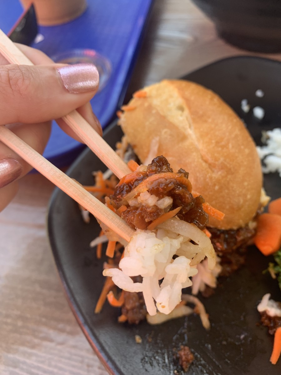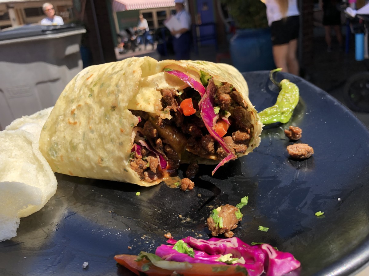 The Beef Bulgogi Wrap is huge and packed with sweet and tangy beef inside. It’s very good, and a great option if you don’t want chicken.