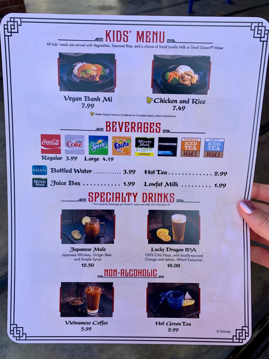 The pot stickers tasted like something you could buy at a store and fry at home, but that doesn’t make them bad. They’re better than I would have expected from Disney.