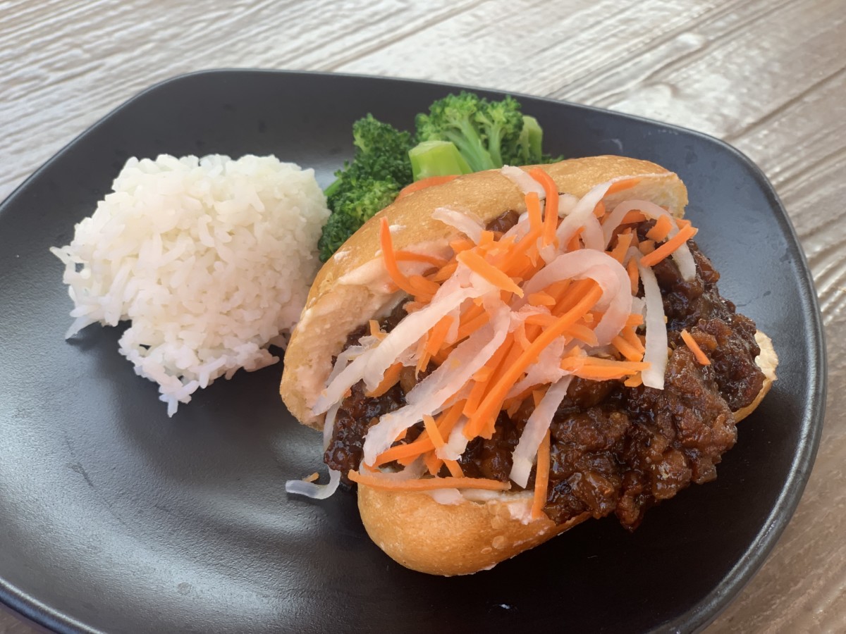 The sauce is very prominent and the flavor takes over everything else. It’s much better when eaten with the rice on the side. The bread is super soft, at least.