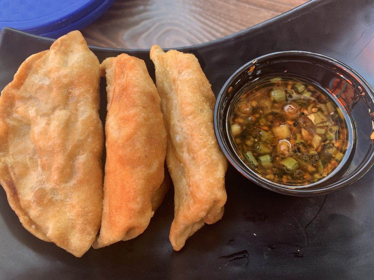 The pot stickers are good and we really liked the dipping sauce. It tasted like a soy sauce, with a bit of green onion.