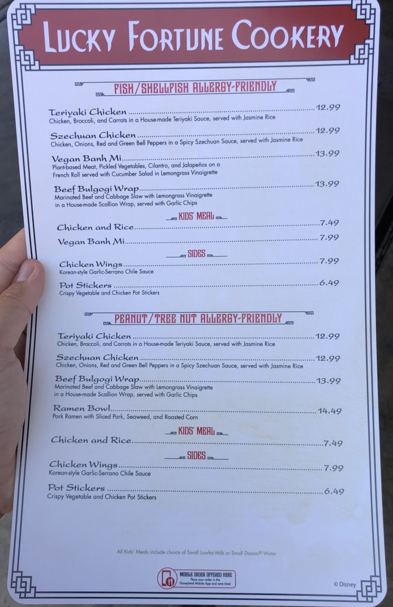 If you’re interested in any of these items, but are wary of cross-contamination, we’ve included the Allergy-Friendly menus for Lucky Fortune Cookery as well: