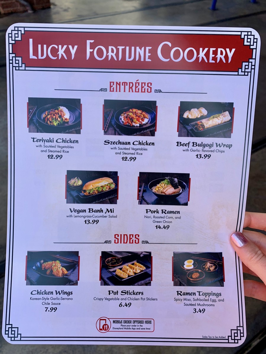 We’re back at the Lucky Fortune Cookery in Disney California Adventure! Actually, we don’t come here often. For years, this has been one of the worst eateries at the park, and we tended to avoid it often. However, the Pacific Rim foods restaurant has officially junked their trademark take-out boxes and debuted an entire new menu, including ramen, bahn mi, and more. Let’s check it out.