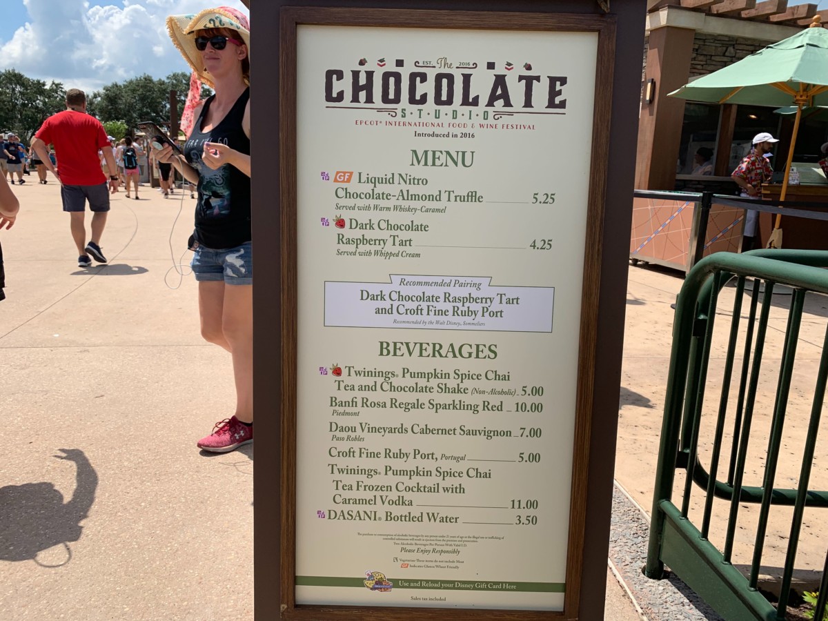 Menu for The Chocolate Studio at the Epcot International Food & Wine Festival