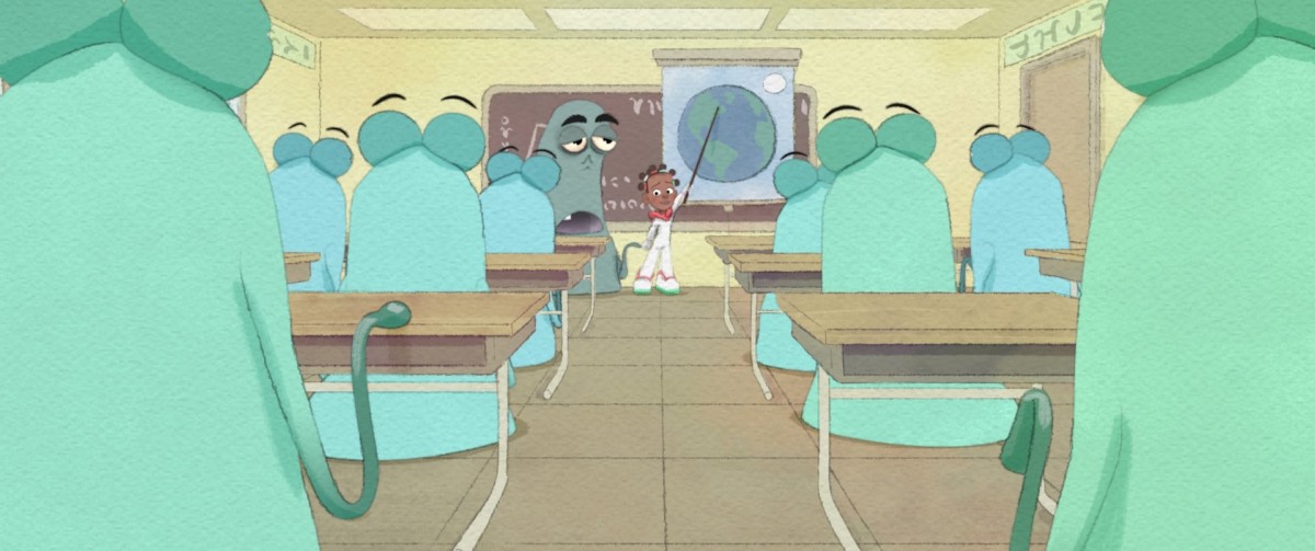“Exchange Student”, directed by Natalie Nourigat, is a showcase of watercolors and comic-style animation. Life is hard enough for exchange students at a new school. But as the only earthling at a school for aliens, the central character in this fanciful story is the ultimate outsider and must prove her worth to be accepted by her unusual classmates.