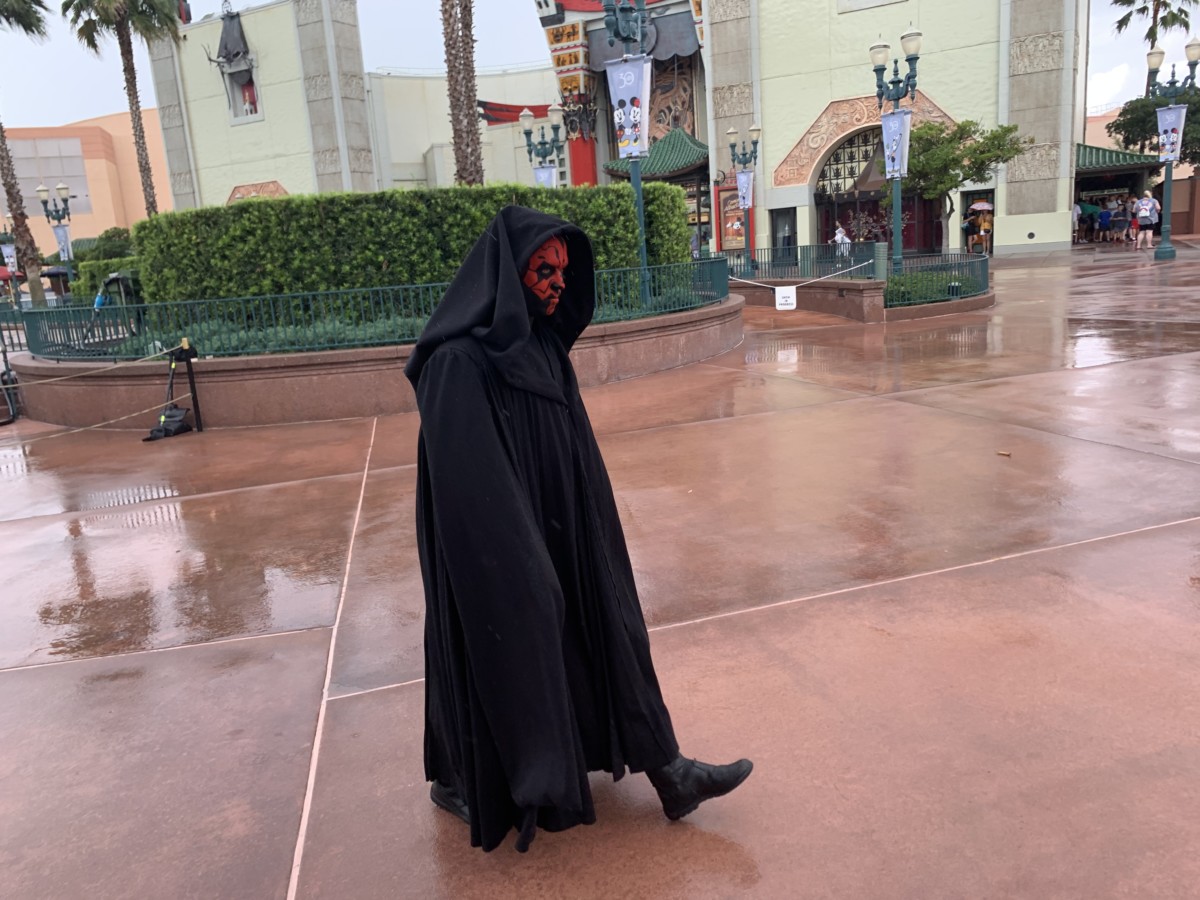 A day at Walt Disney World would not be complete if it weren’t for a slight rain shower. The Star Wars stage show was abruptly ended due to rain. We caught Darth Maul headed back inside, despite his efforts to control the weather, not even the Sith can do that in Florida!