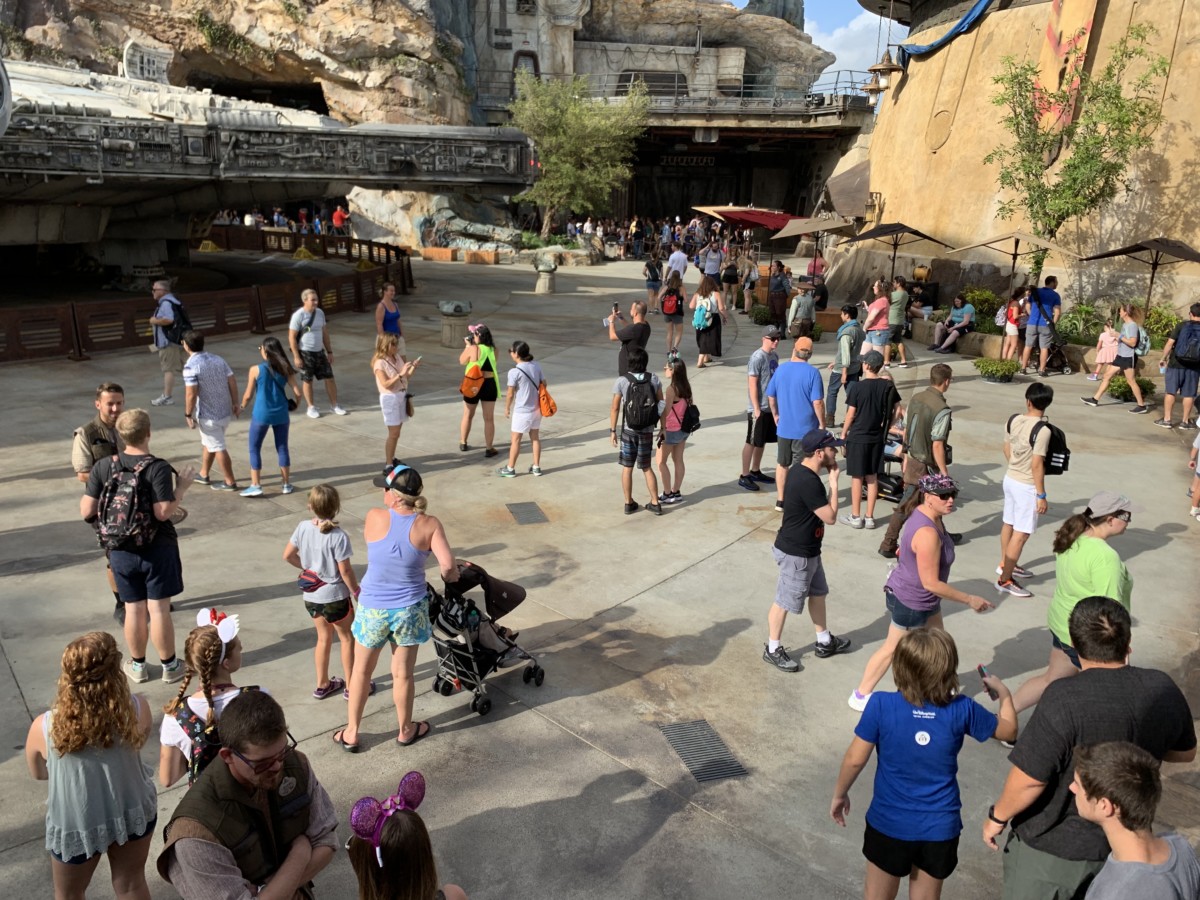 It is now 9:00am and all day guests have been released into the park! This crowd is headed right for Galaxy’s Edge! Still not too bad for a rope drop.
