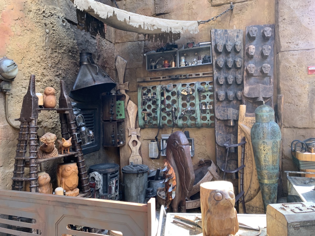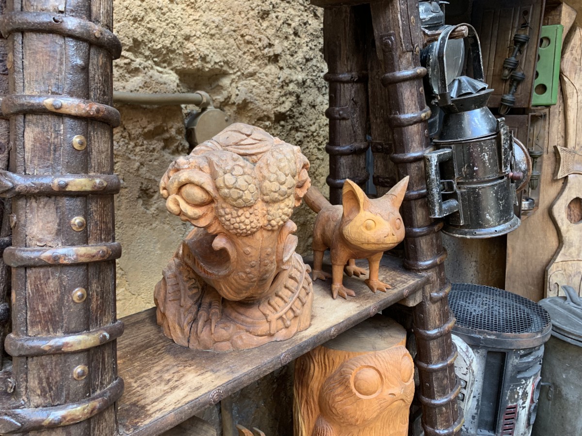 Right when you enter the marketplace section of Batuu, from the end closest to the restrooms, look to your right. You’ll see a woodcarving station. I always stop to check out this amazing area of detail, I spot something every time!
