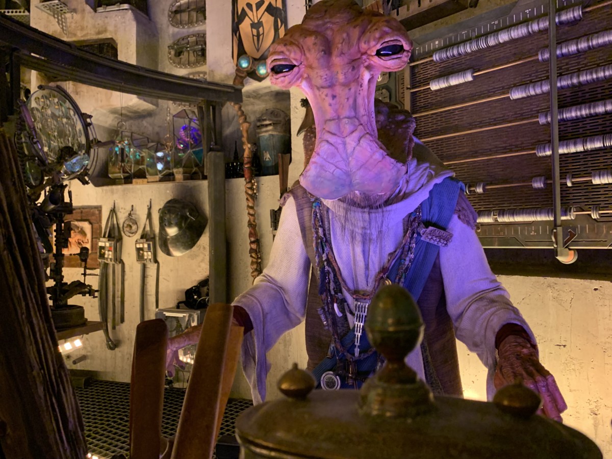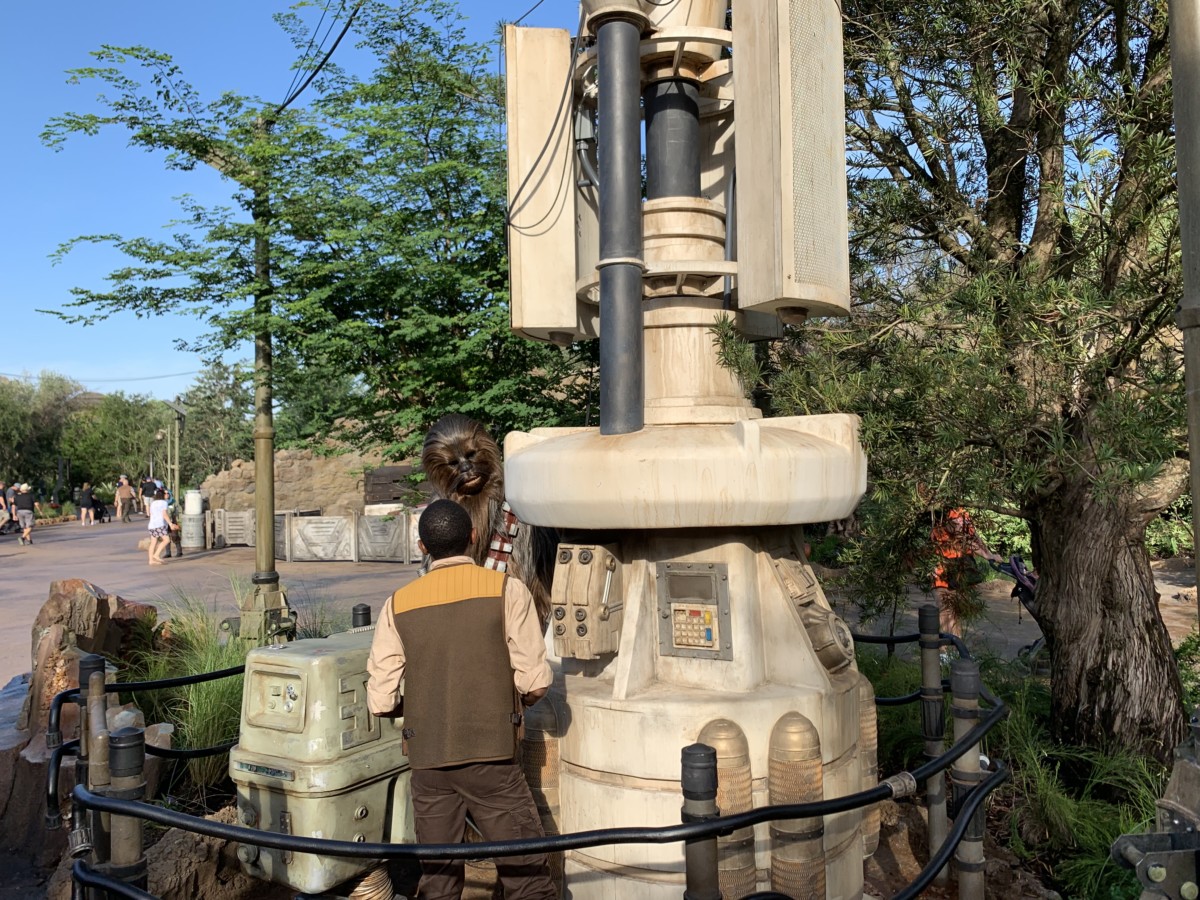 Next, we headed into Galaxy’s Edge where we encounter Chewie and a friend working hard to fix sort of problem going on with this electricity tower.