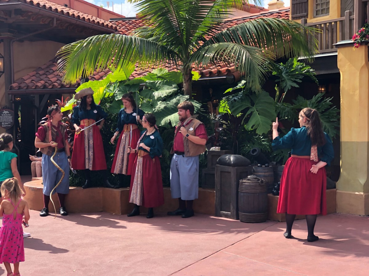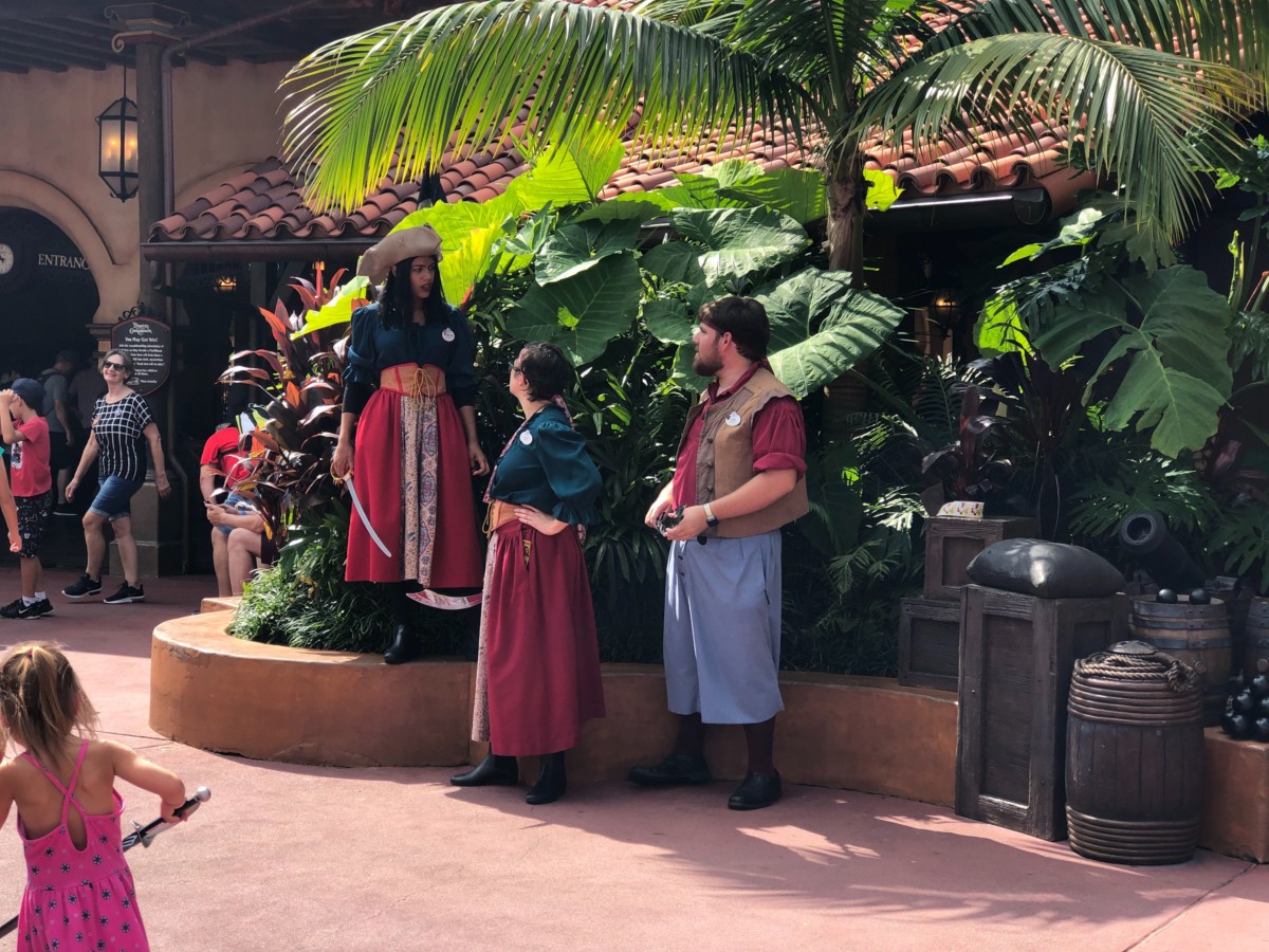Over in Adventureland, near Pirates of the Caribbean, we’ve found a crew of roaming pirates. They were having fun interacting with guests and taking pictures. We really enjoyed seeing how much fun everyone was having hanging out with this pirate crew.