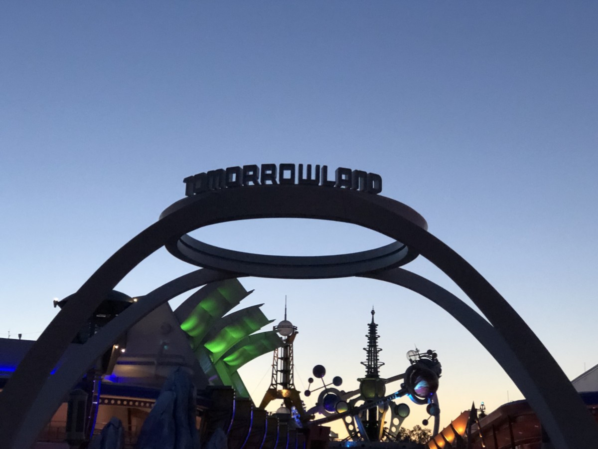 Welcome to another early morning here at the Magic Kingdom! We couldn’t sleep, we were too excited at the possibility of a new Tomorrowland sign! When we got our first glimpse at the new Tomorrowland sign, it wasn’t even light outside yet.