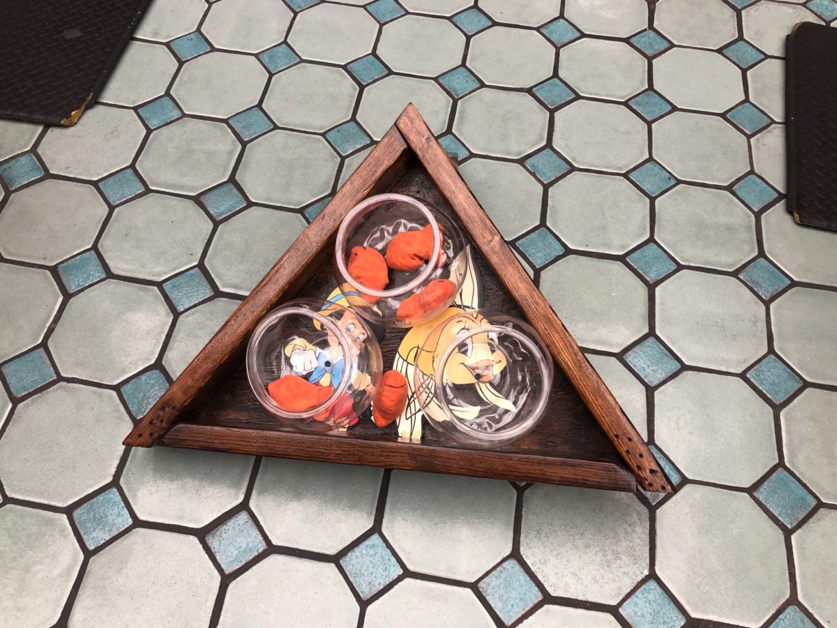 We had to stop and toss a little bean bag fish into a plastic fishbowl. This is fun!