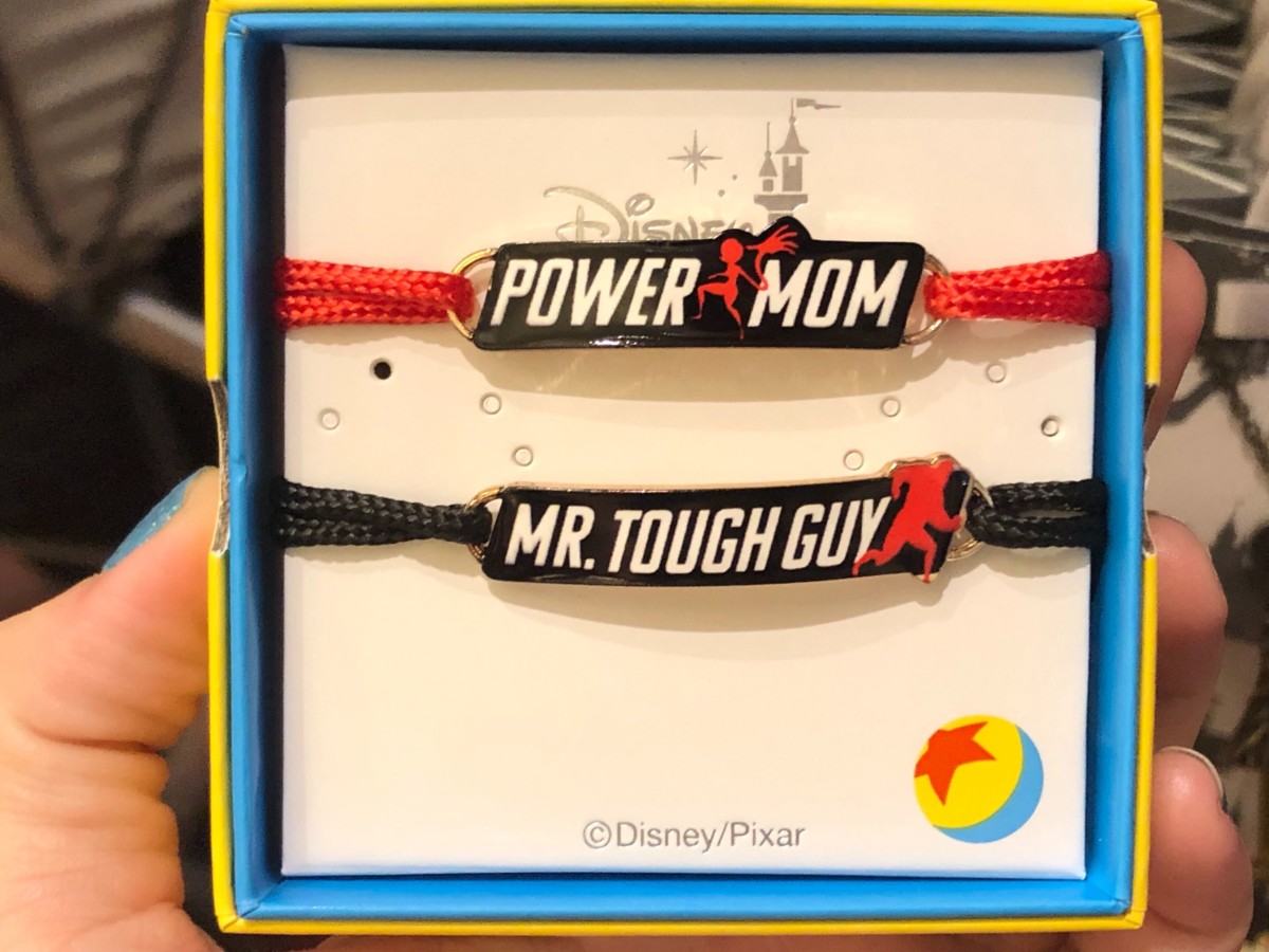This bracelet set is an interesting combo. “Power Mom” and “Mr. Tough Guy” string bracelets feature Mr. and Mrs. Incredible for $19.99.