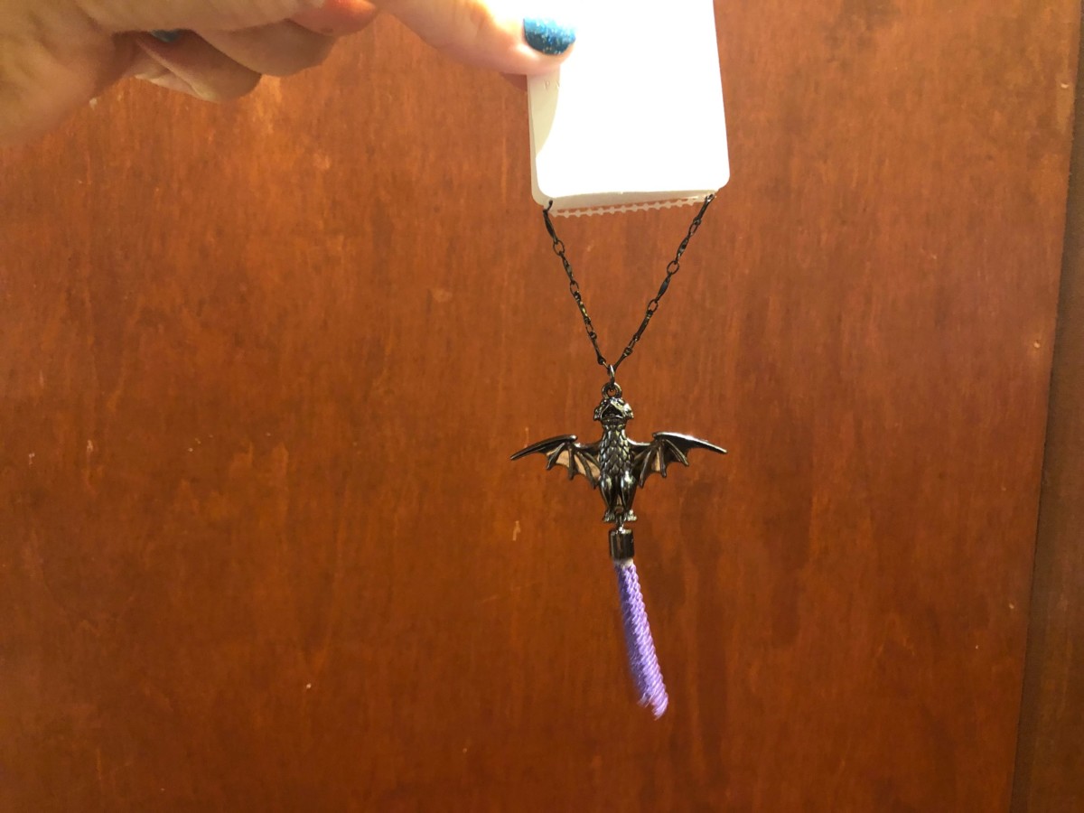 This Haunted Mansion bat stanchion necklace is $19.99 and available at the Emporium as well.